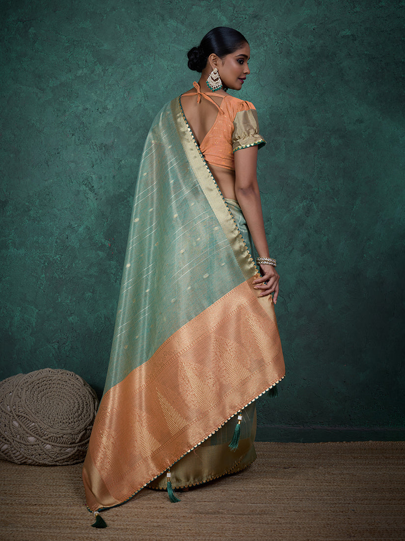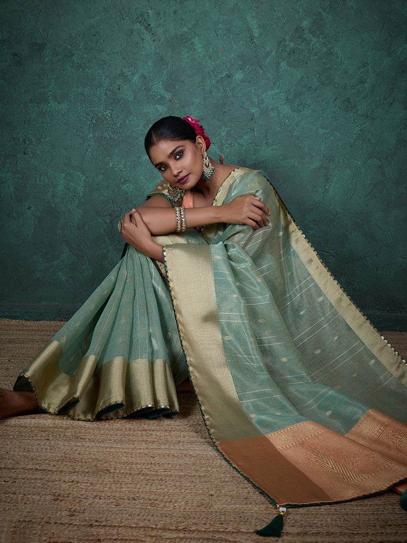 Saree Work : Zari Woven Sequince work || Blouse: Woven work