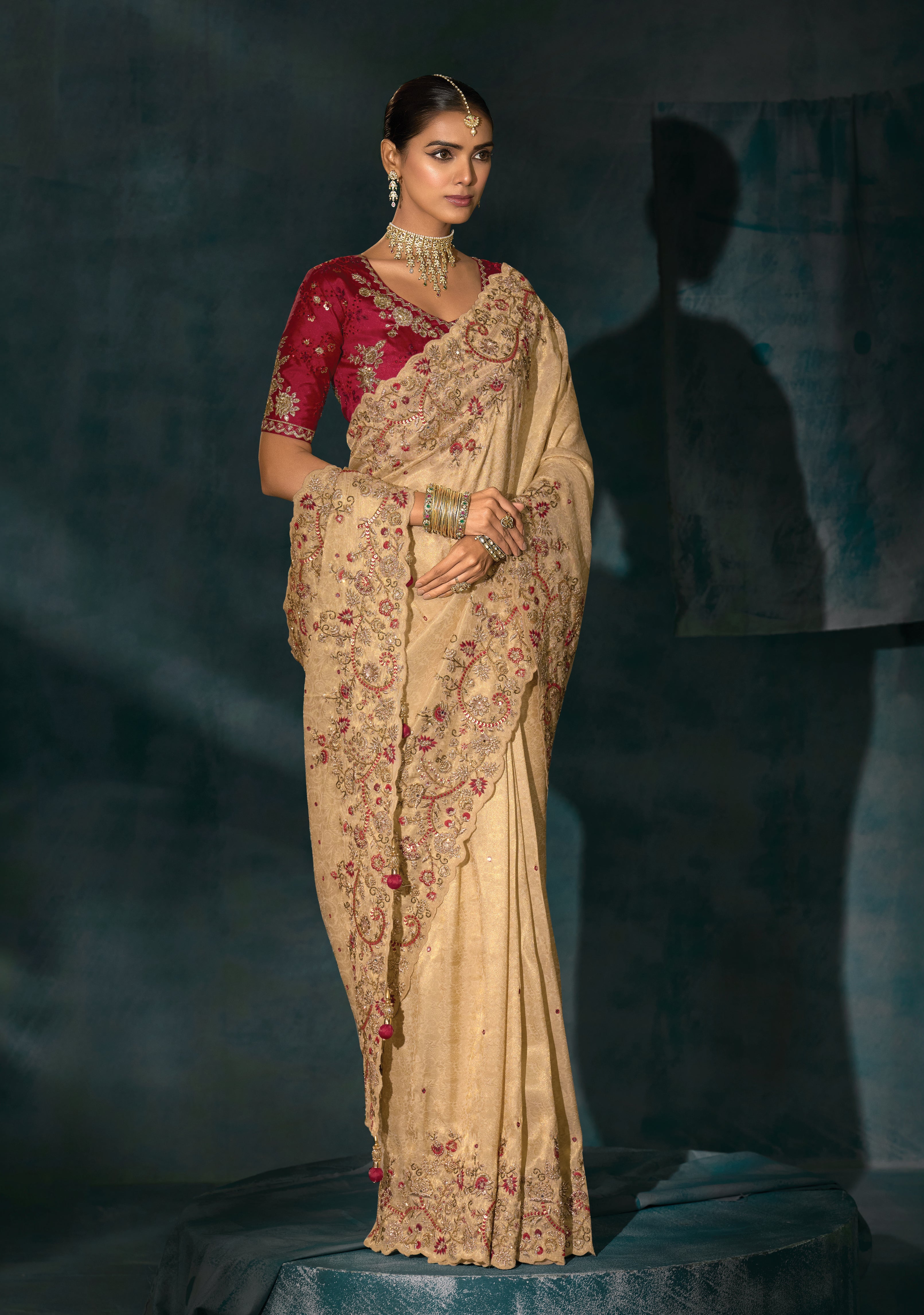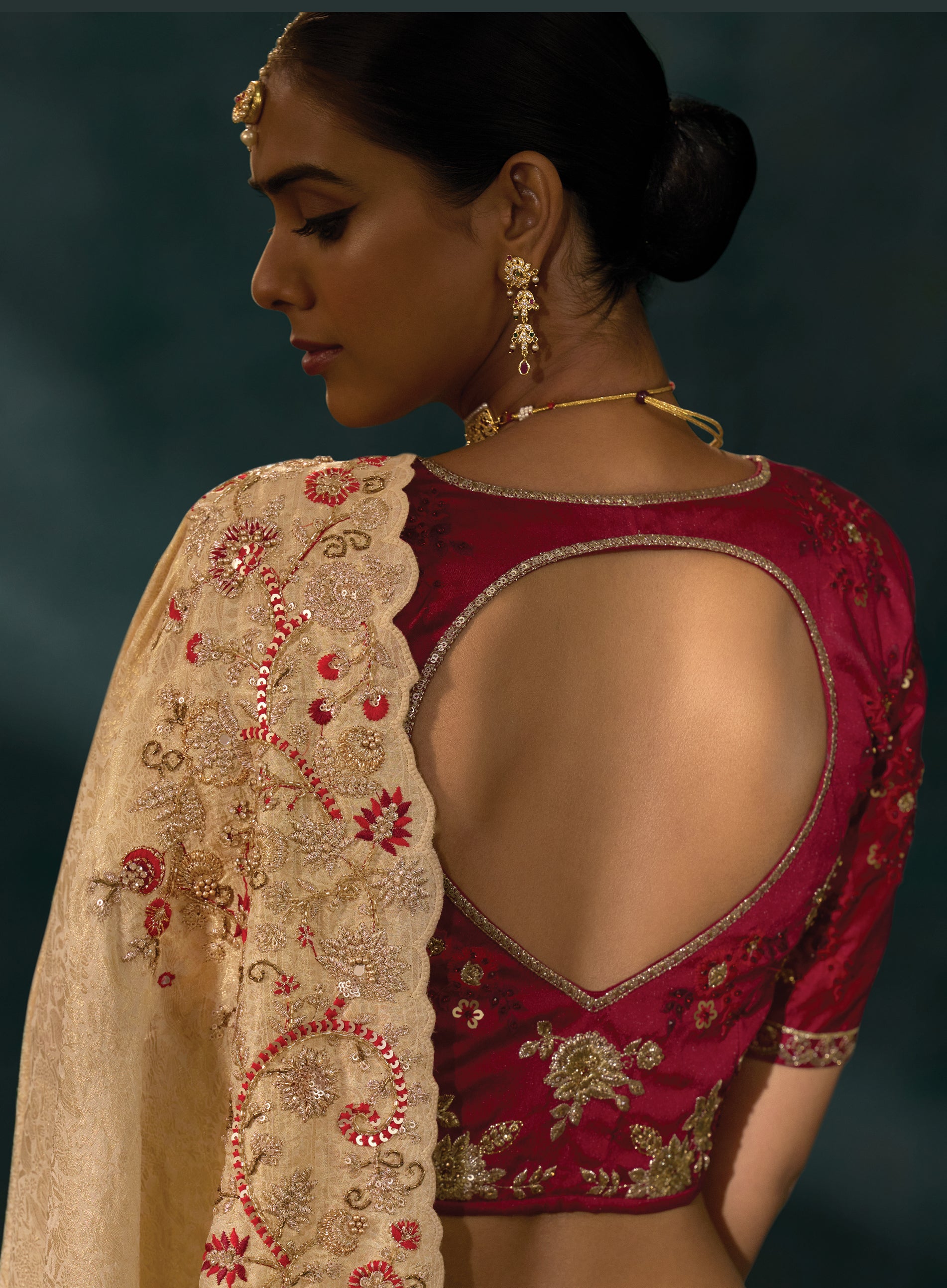 Saree Colour : Beige|| Blouse Colour :- Maroon