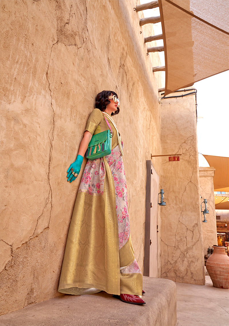 Saree Colour : Light gray || Blouse Colour: Golden