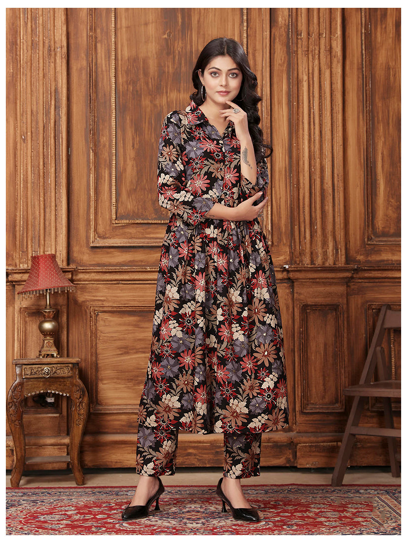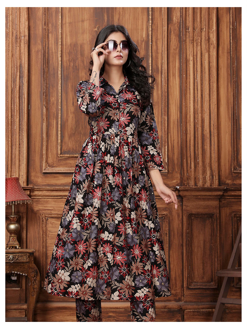This Black kurta and pant set features light floral printed work, creating an easy daytime sparkle perfect for casual poise. Awarded as the Most Trusted Brand, we're delivering styles you love, just as promised.