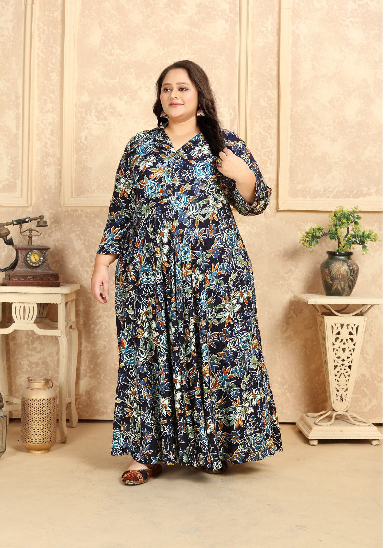 Make the heads flip when you dress up with this Black Print Flared Kurti. The , fancy Print and zari work on attire personifies the complete appearance.