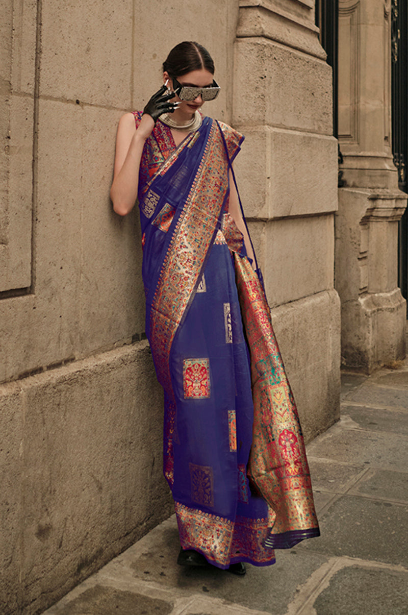 Saree Colour : Slate Blue || Blouse Colour : Multi
