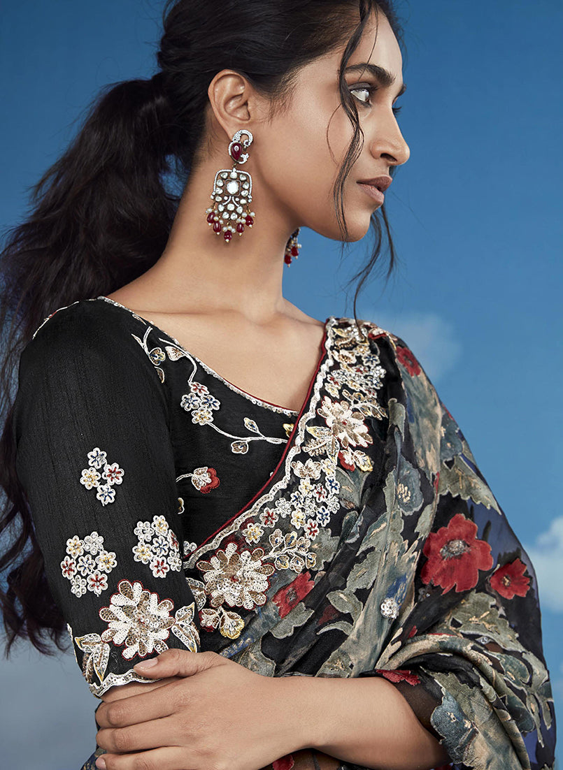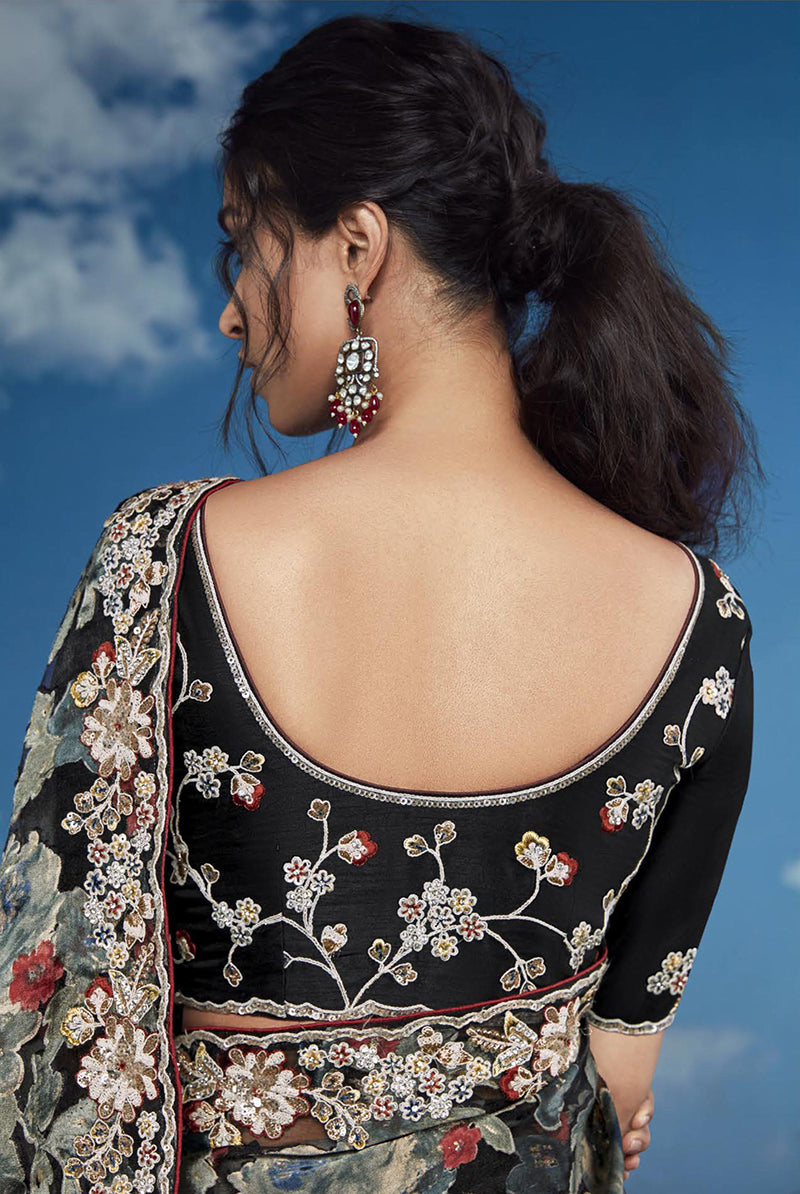 Saree Work : Resham Thread Embroidery || Blouse: Embroidered