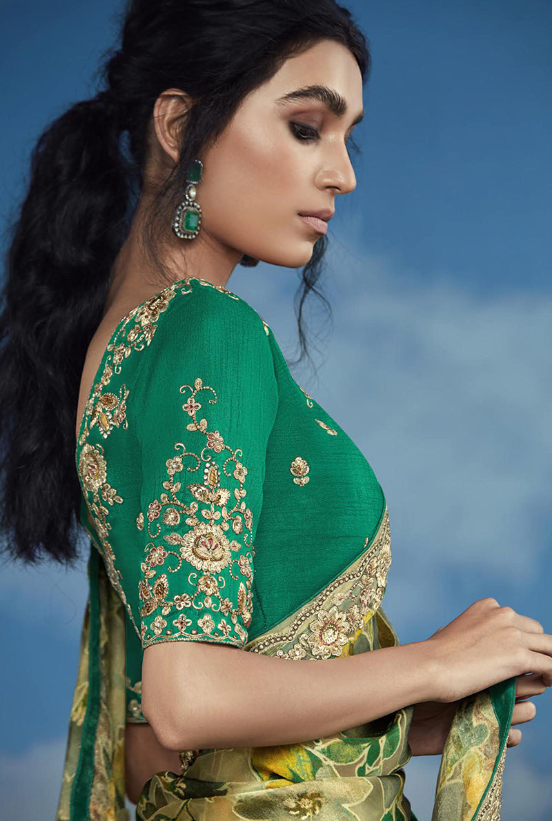 Saree Work : Resham Thread Embroidery || Blouse: Embroidered