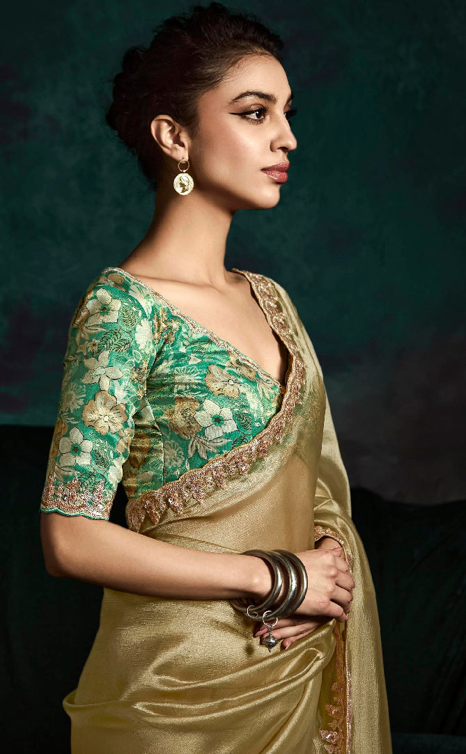 Saree Colour : Bronze Yellow || Blouse Colour : Light Teal