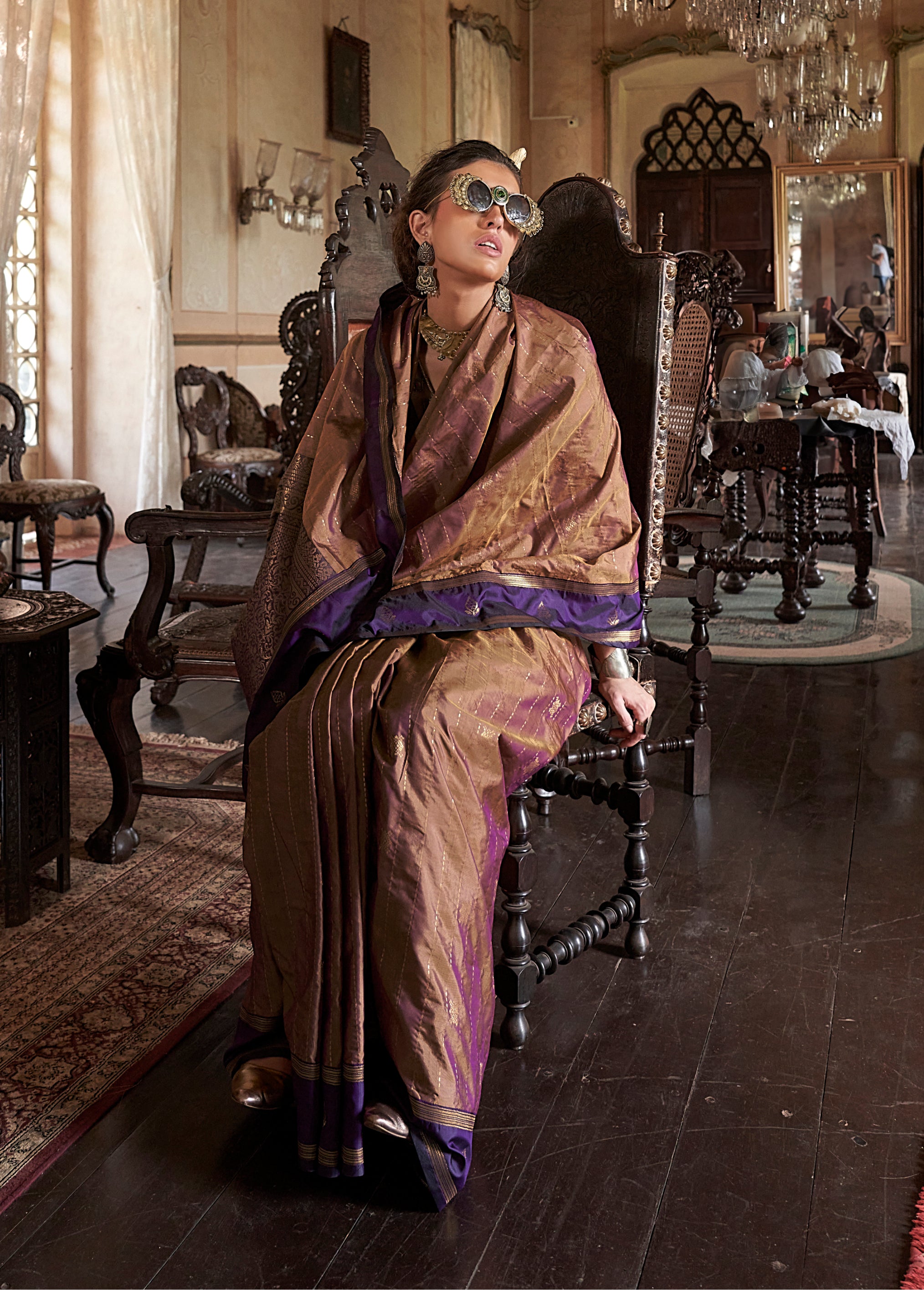 Authentic beauty will come out as a results of the dressing style and design with this Brown Tusser silk contemporary saree. The ethnic weaving work to your attire adds a sign of splendor statement with your look. Comes with matching blouse. (Slight variation in color, fabric & work is possible. Model images are only representative.)