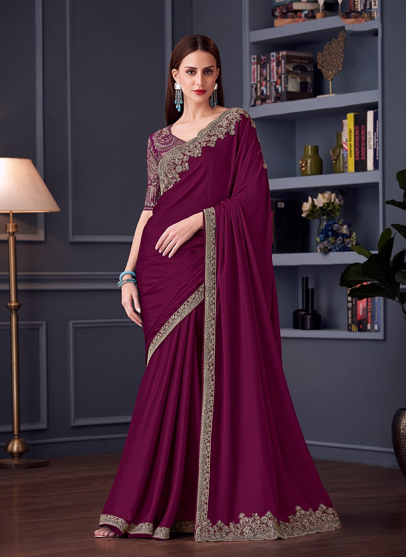 Saree Colour : Burgundy || Blouse Colour : Burgundy
