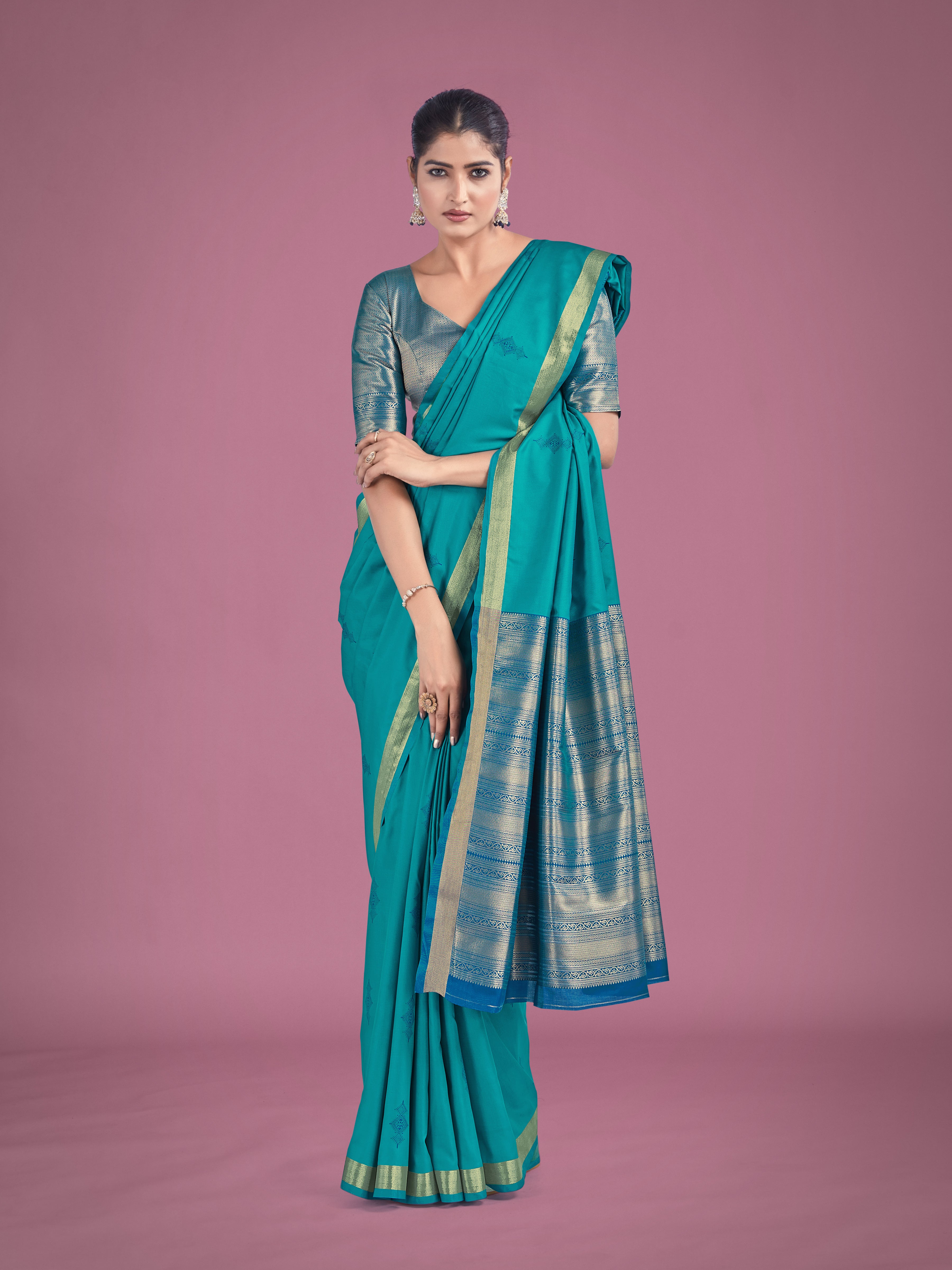 Saree Colour : Turquoise || Blouse Colour :-Turquoise