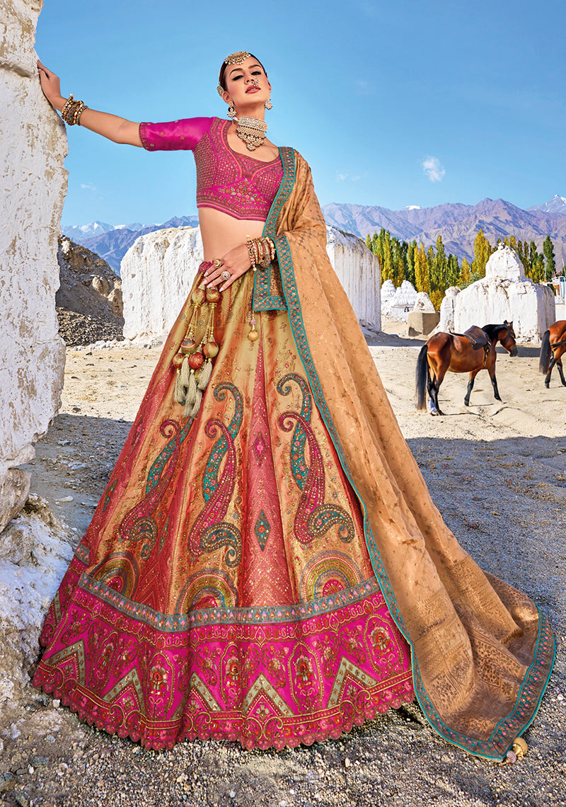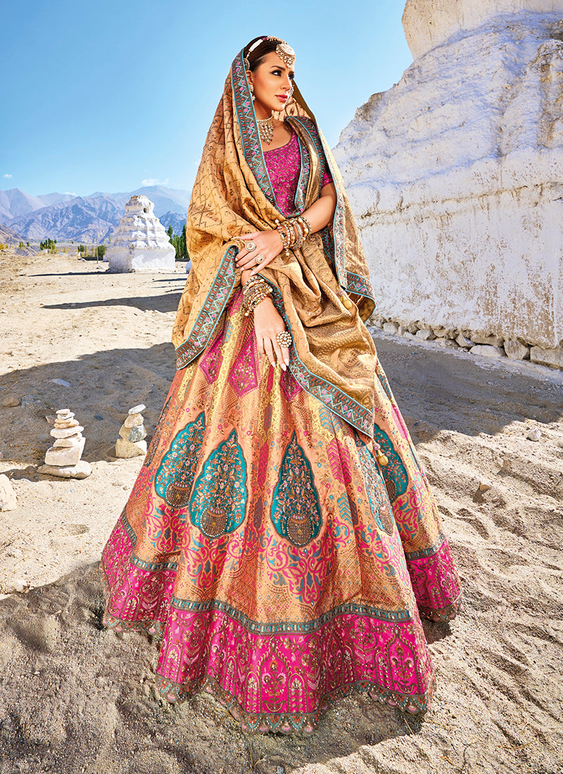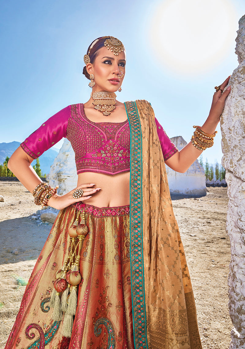 Colour : Lehenga :- Copper || Blouse :- Rani Pink || Dupatta :- Copper