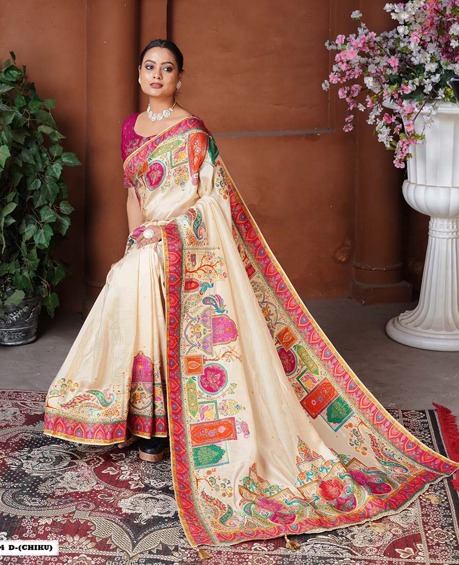 Saree Colour : Cream||  Blouse Colour :Rani Pink