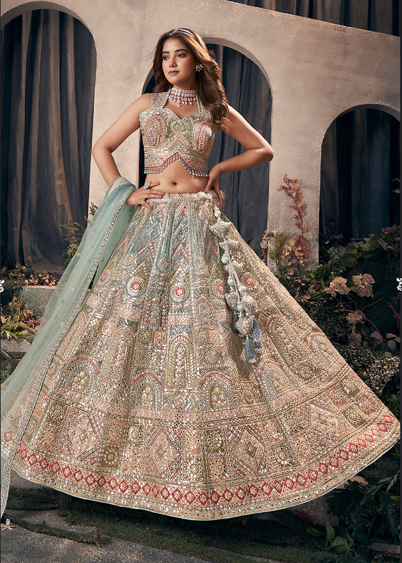 Colour : Lehenga :- Multi Colour || Blouse :- Multi Colour || Dupatta :- Aqua Blue