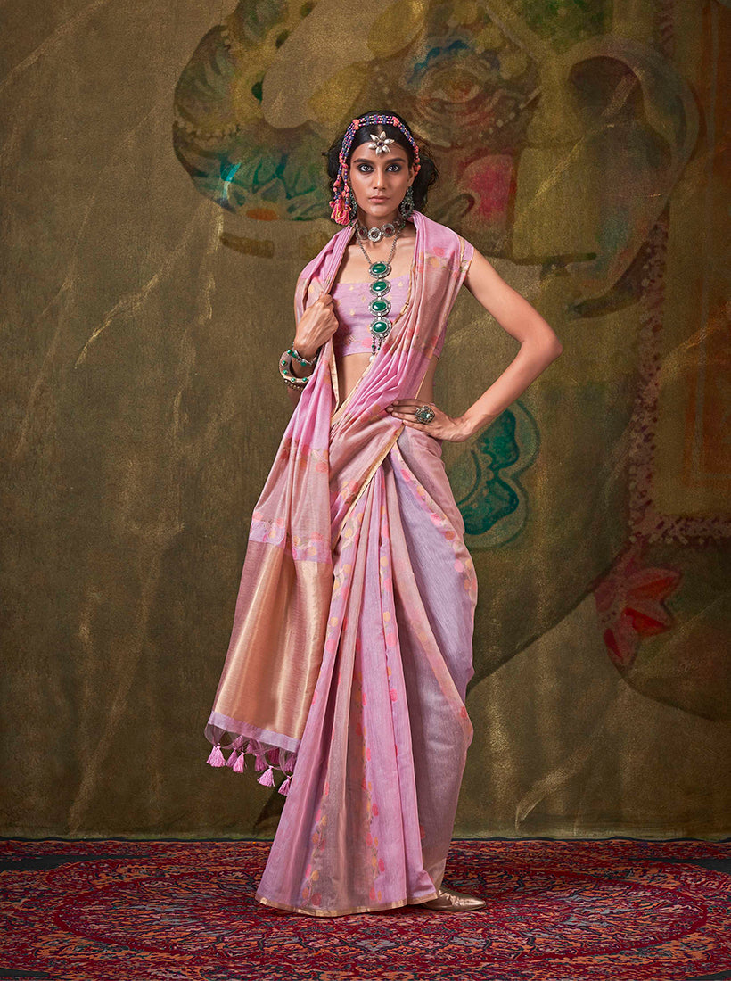 Monjolika Fashion presents this Pure Spun Rangkat Saree is a celebration of artisanal weaving. Featuring handwoven Rangkat stripes in rich, radiant hues, the saree is crafted from soft spun threads that offer a silk-like finish with easy wearability. Light yet striking, this piece transitions beautifully from casual ethnic wear to light festive occasions.