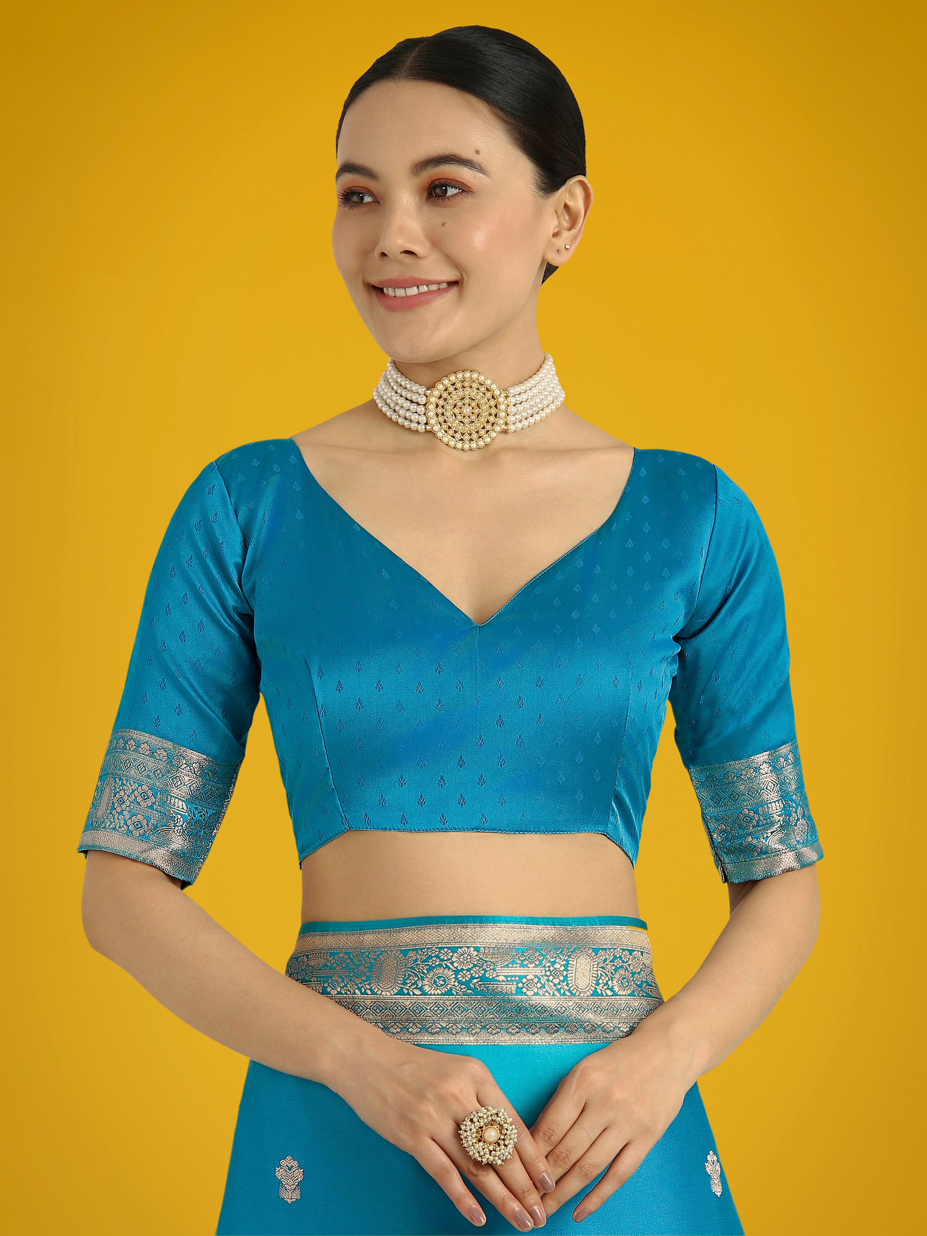 Saree Colour : Cyan blue|| Blouse Colour : Cyan blue