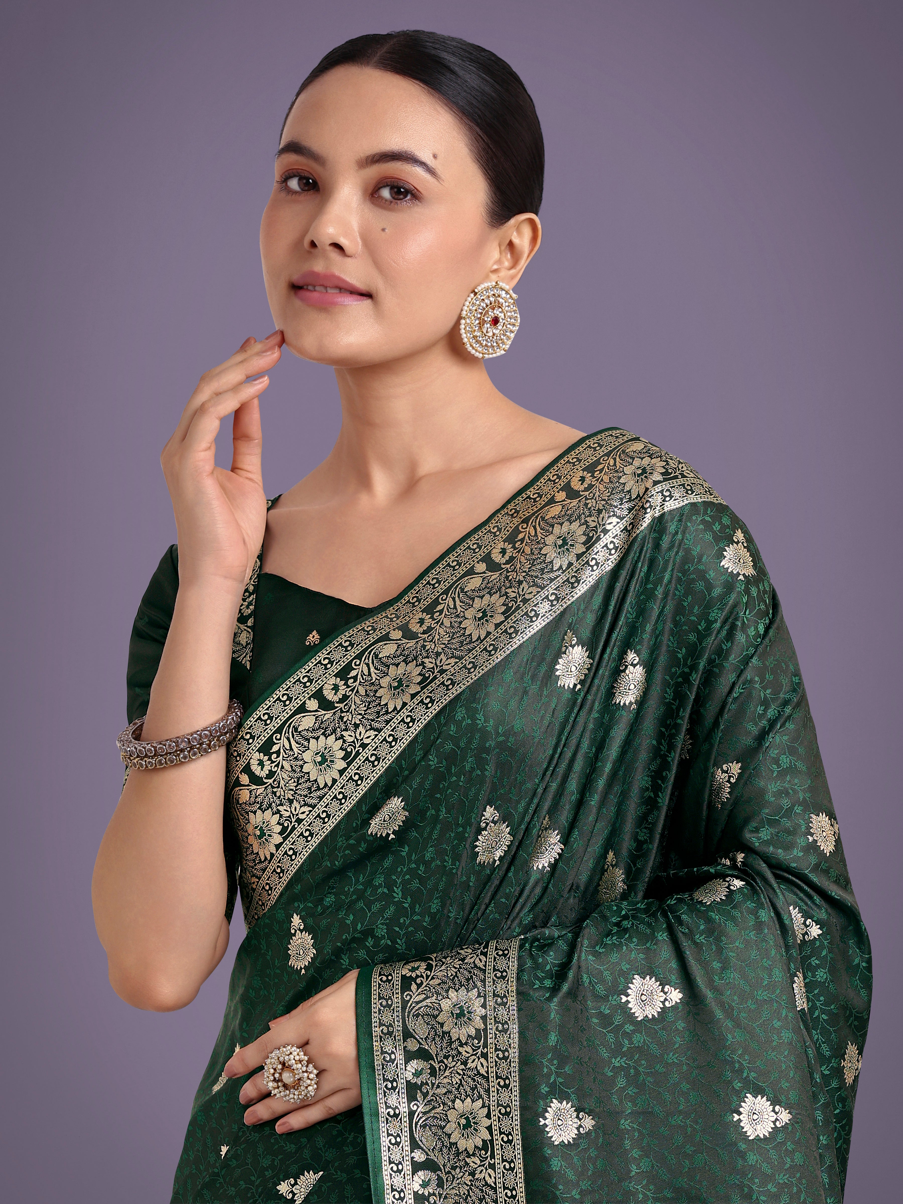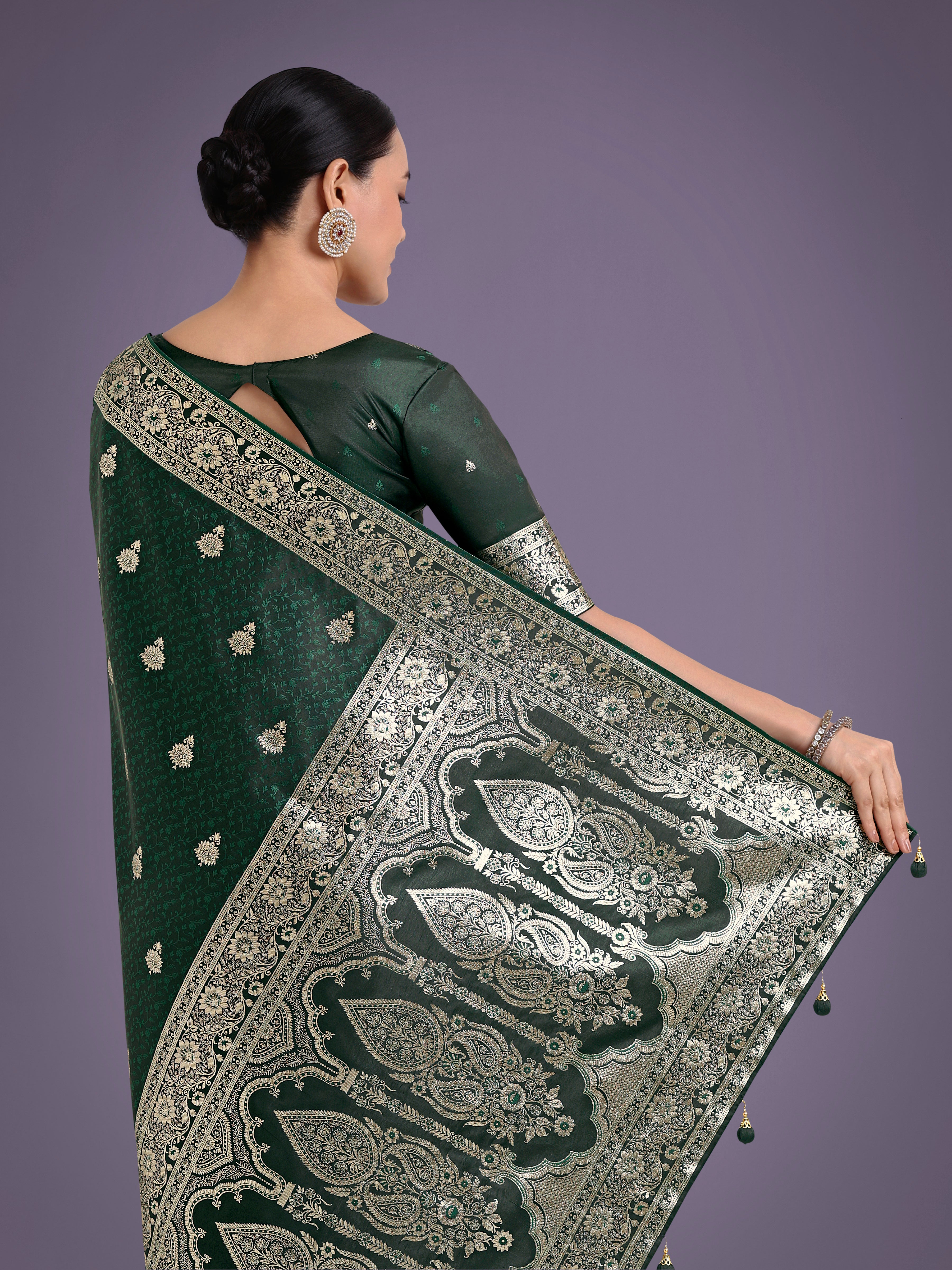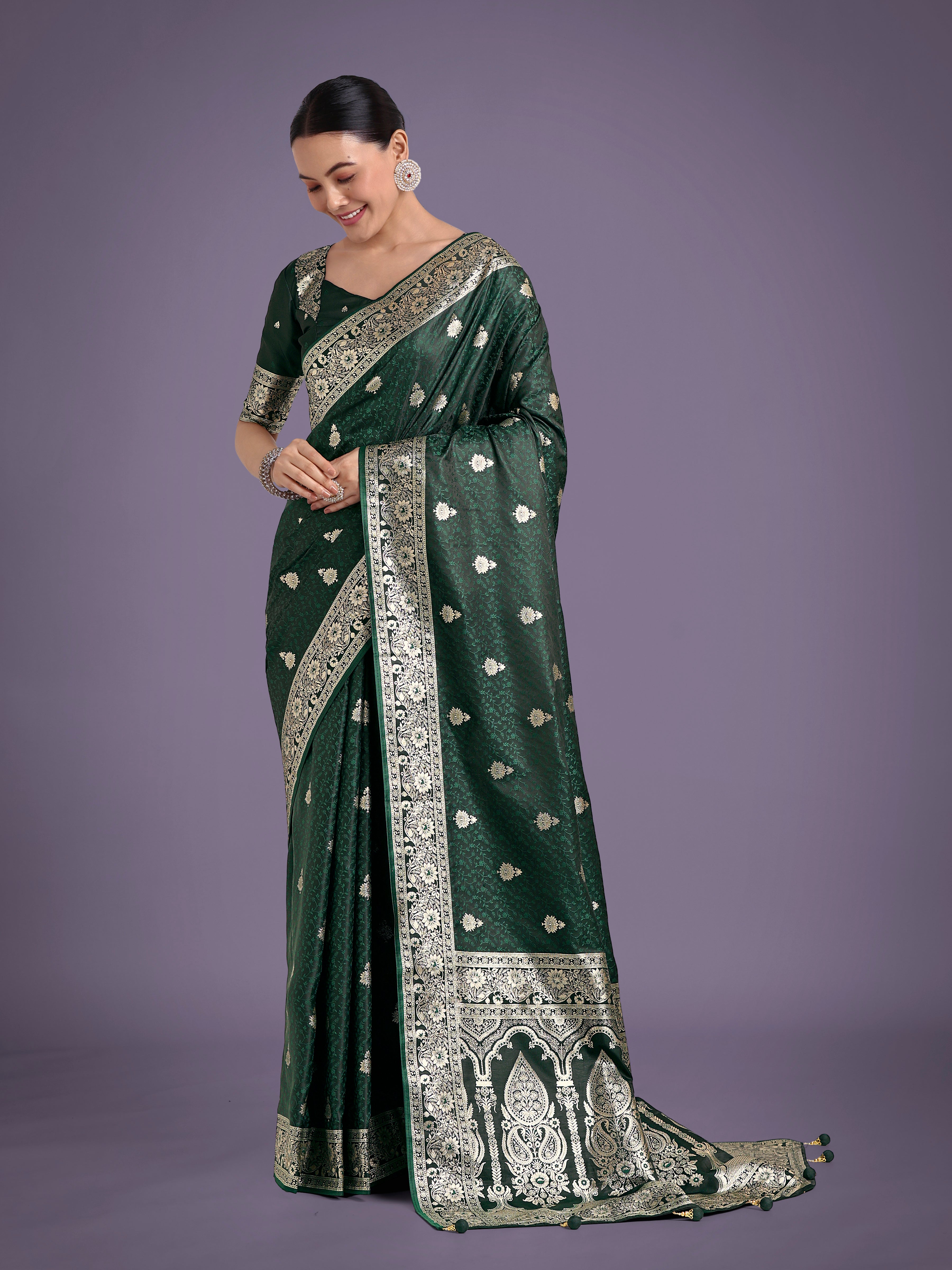 Saree Colour : Dark Green|| Blouse Colour : Dark Green