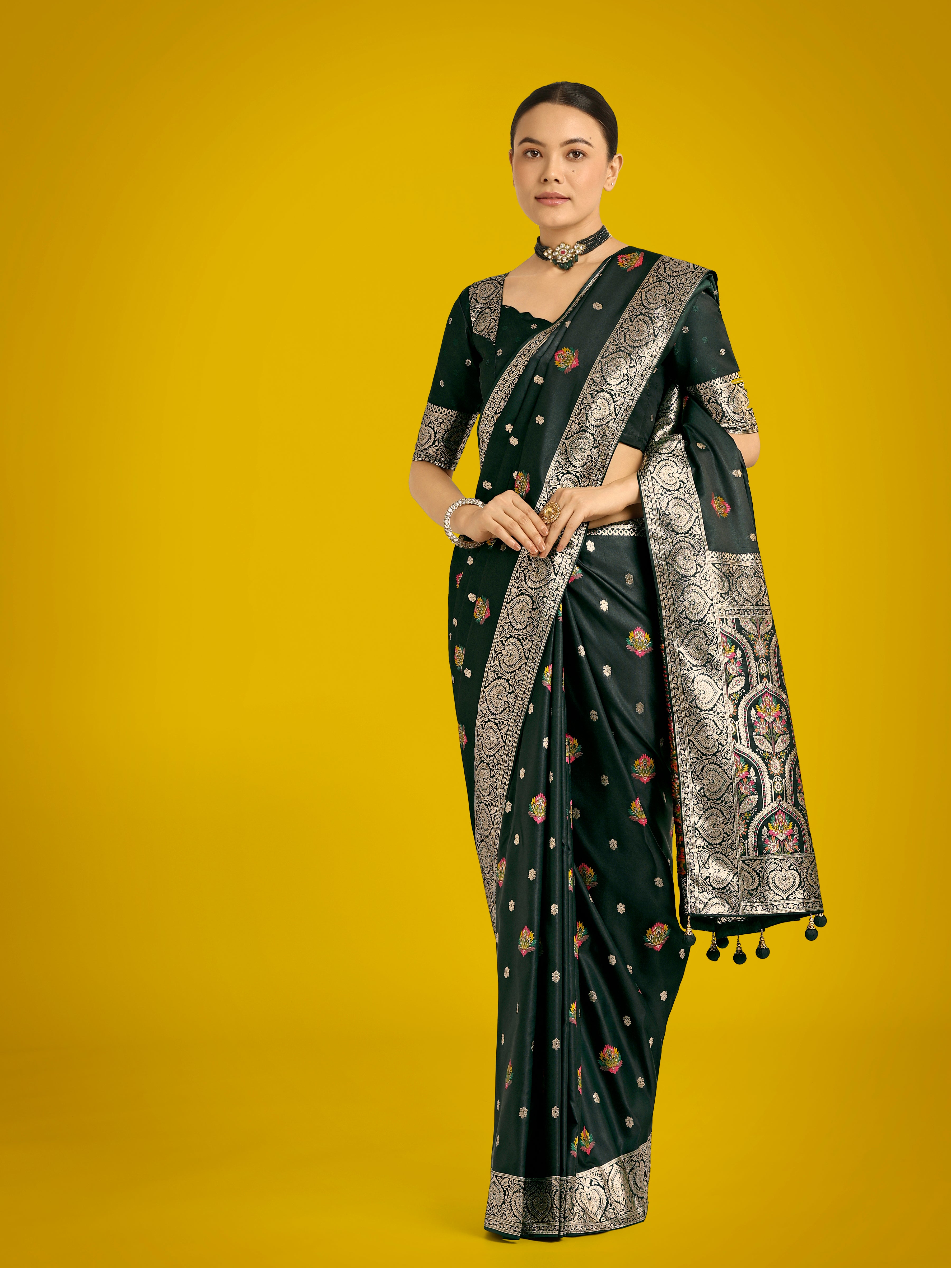 Saree Colour : Dark Green || Blouse Colour : Dark Green