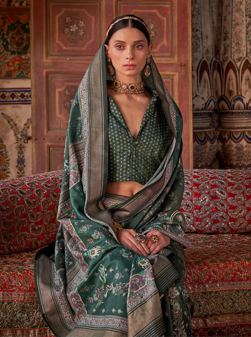 Saree Colour : Dark Green || Blouse Colour : Dark Green