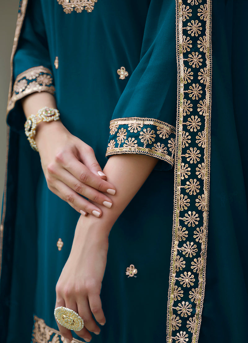 Colour : Top :-Dark Teal|| Bottom :-Dark Teal||Dupatta :-Dark Teal