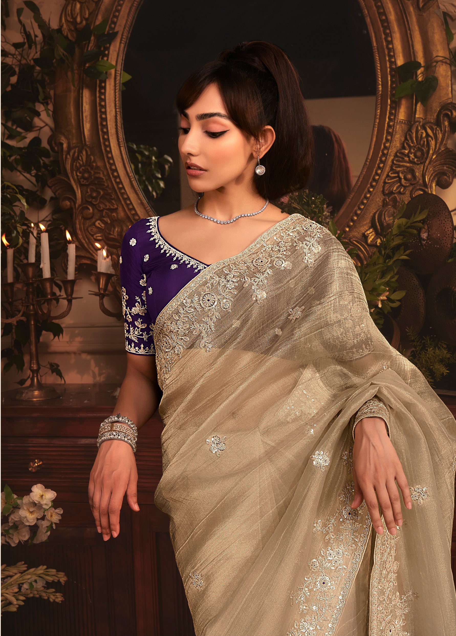 Saree Fabric : : Tissue Organza || Blouse Fabric : Silk