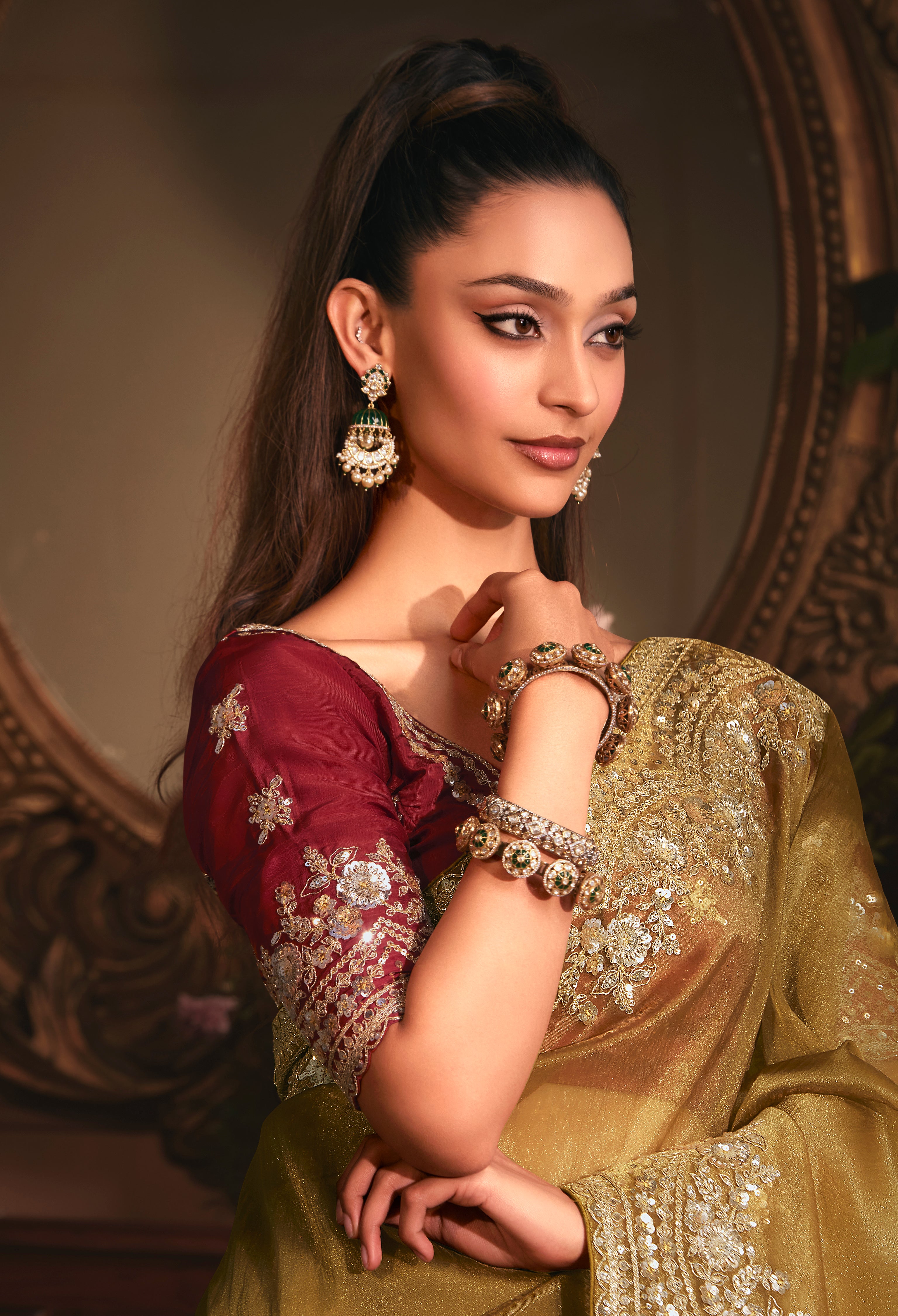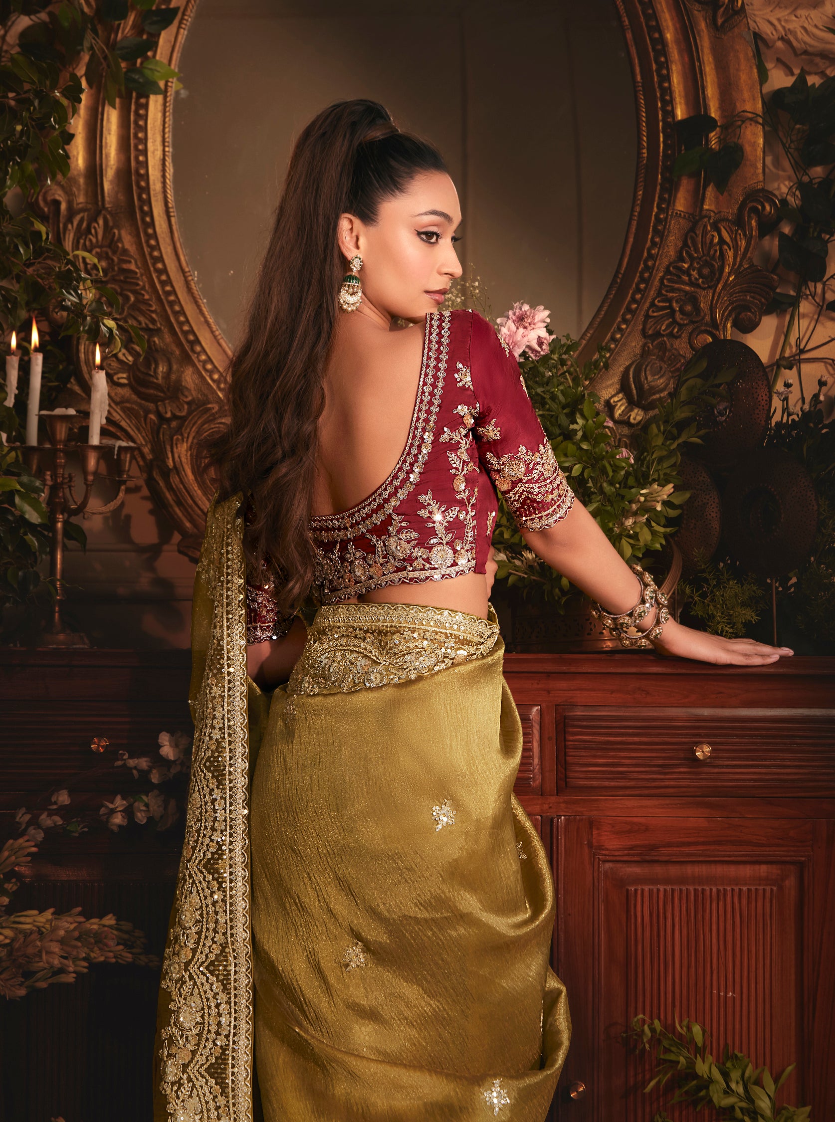 Saree Colour : Golden || Blouse Colour :-Maroon