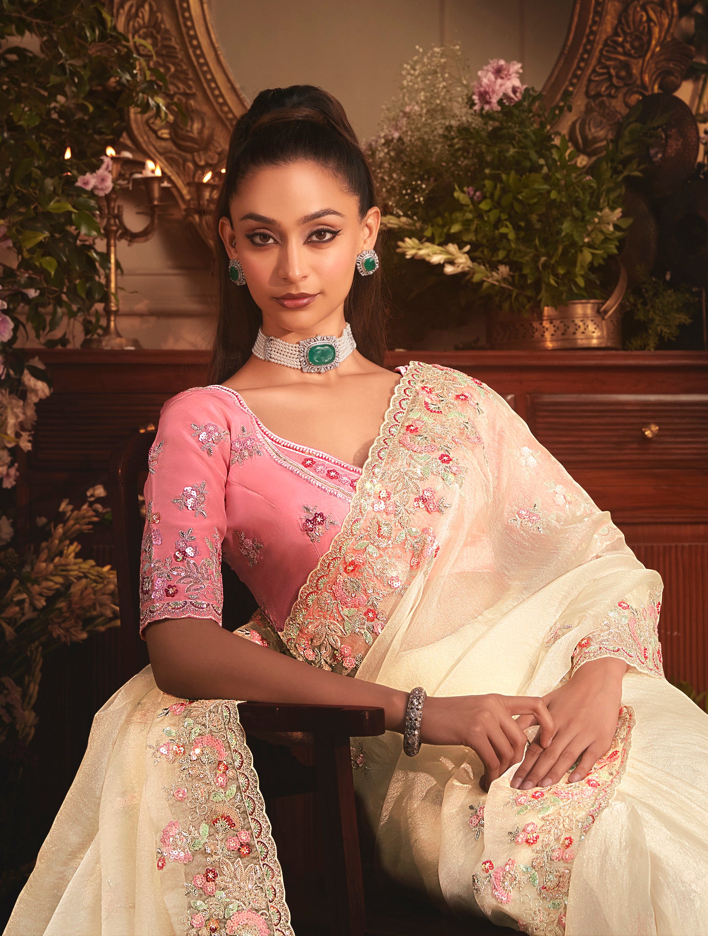 Saree Fabric : : Tissue Organza || Blouse Fabric : Silk
