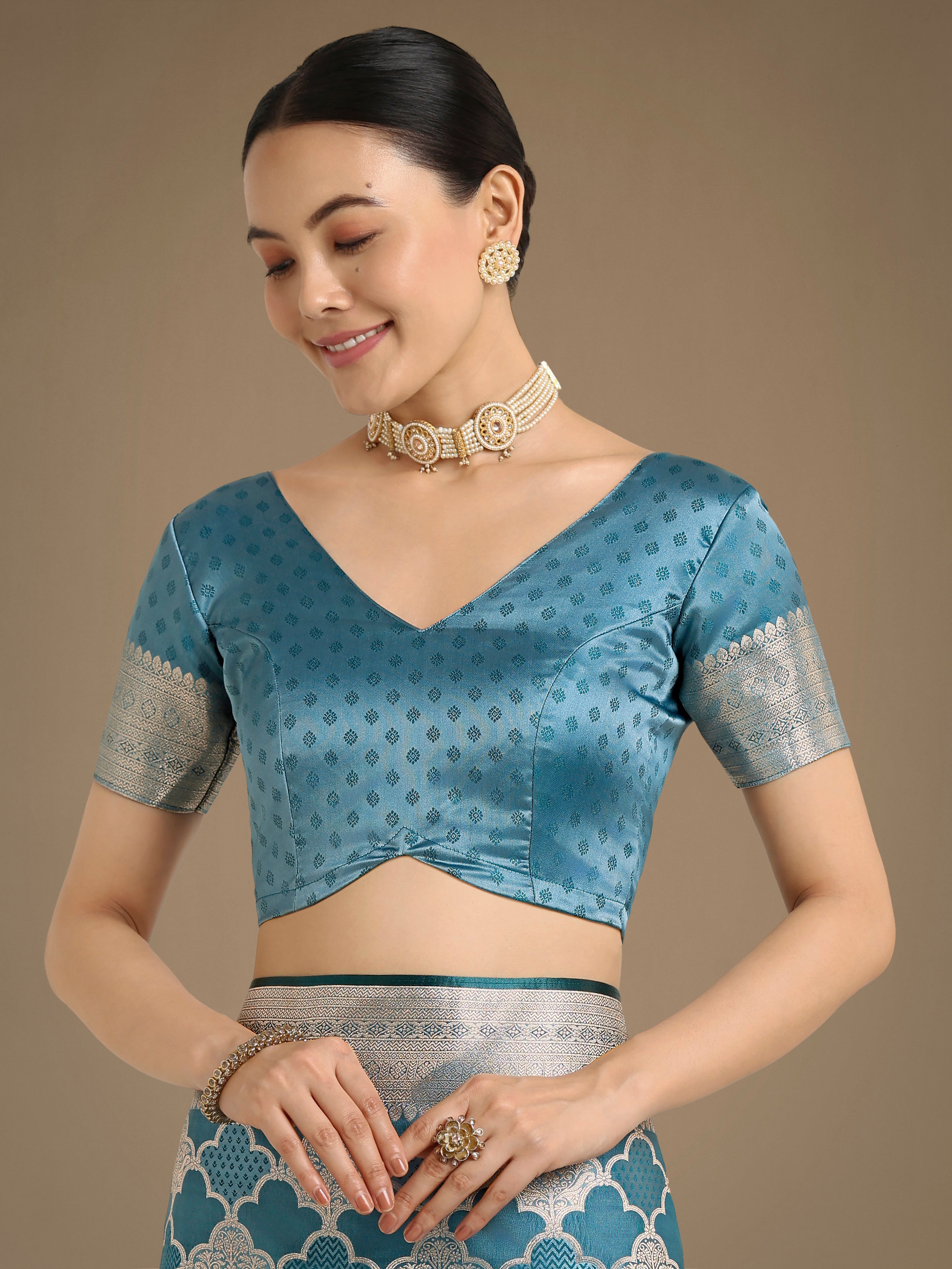 Saree Colour : Cyan blue || Blouse Colour : Cyan blue