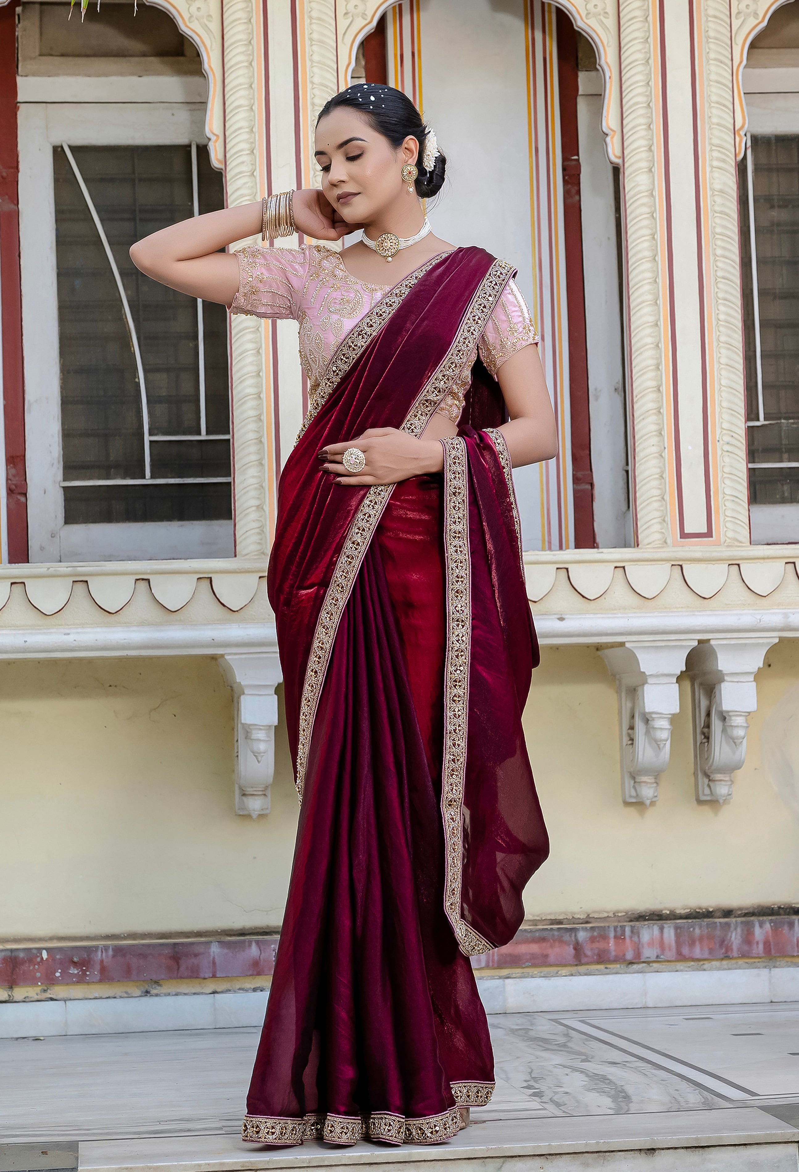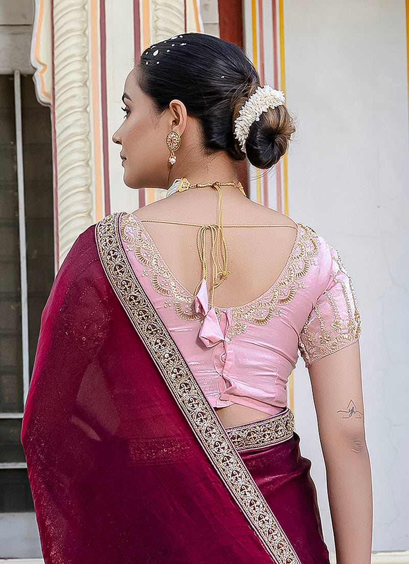 Saree Colour : Maroon || Blouse Colour :- Light pink