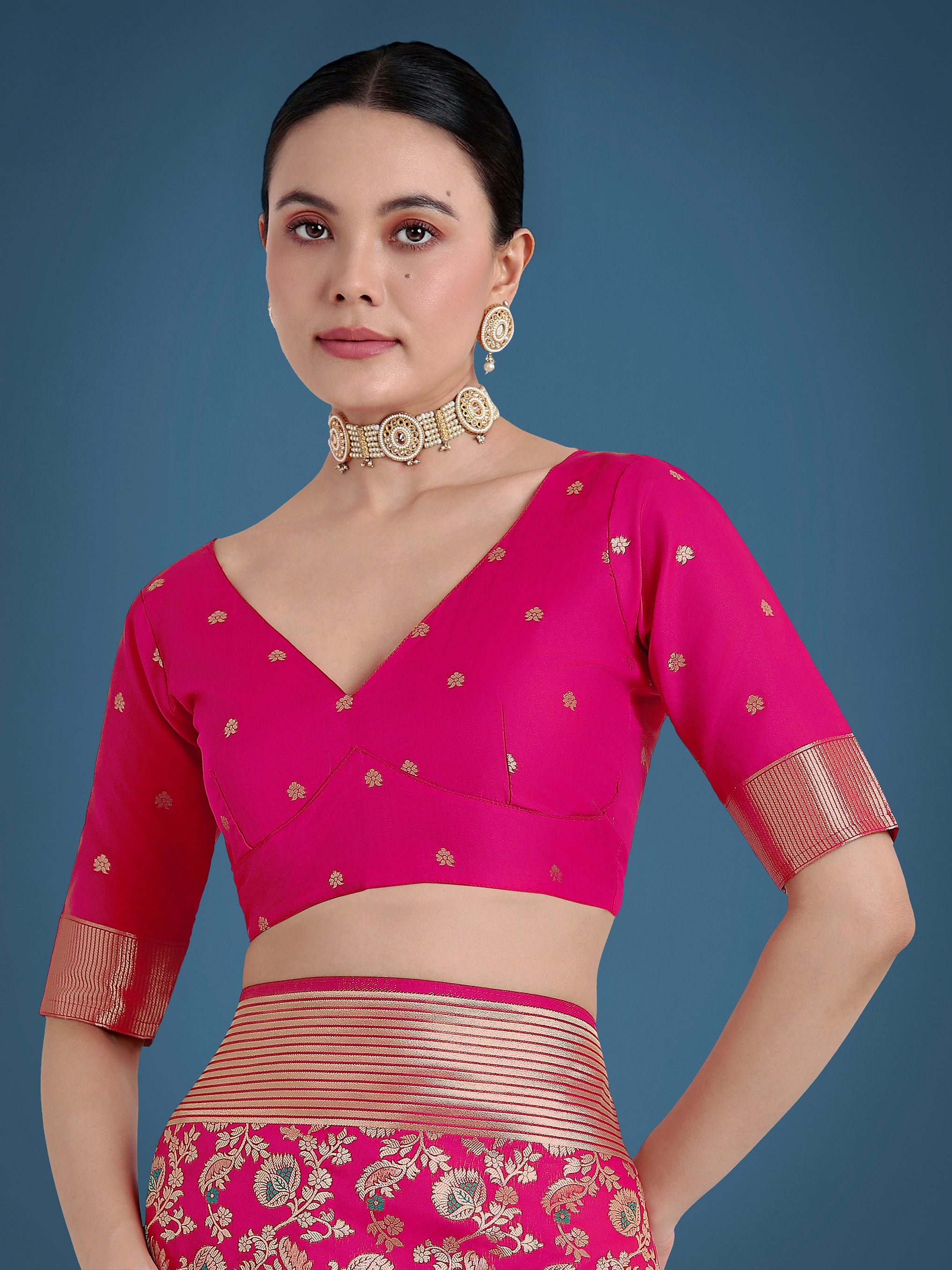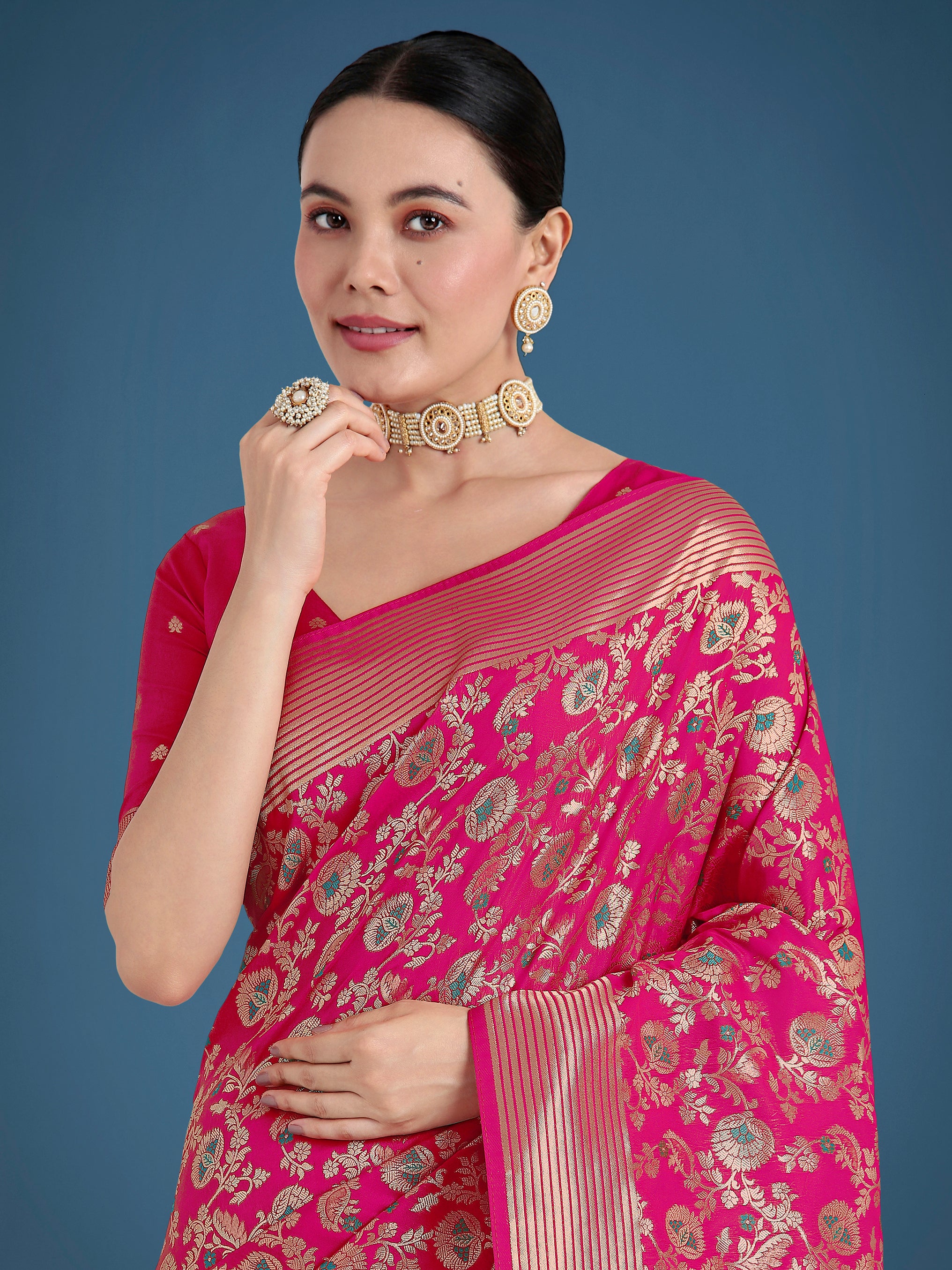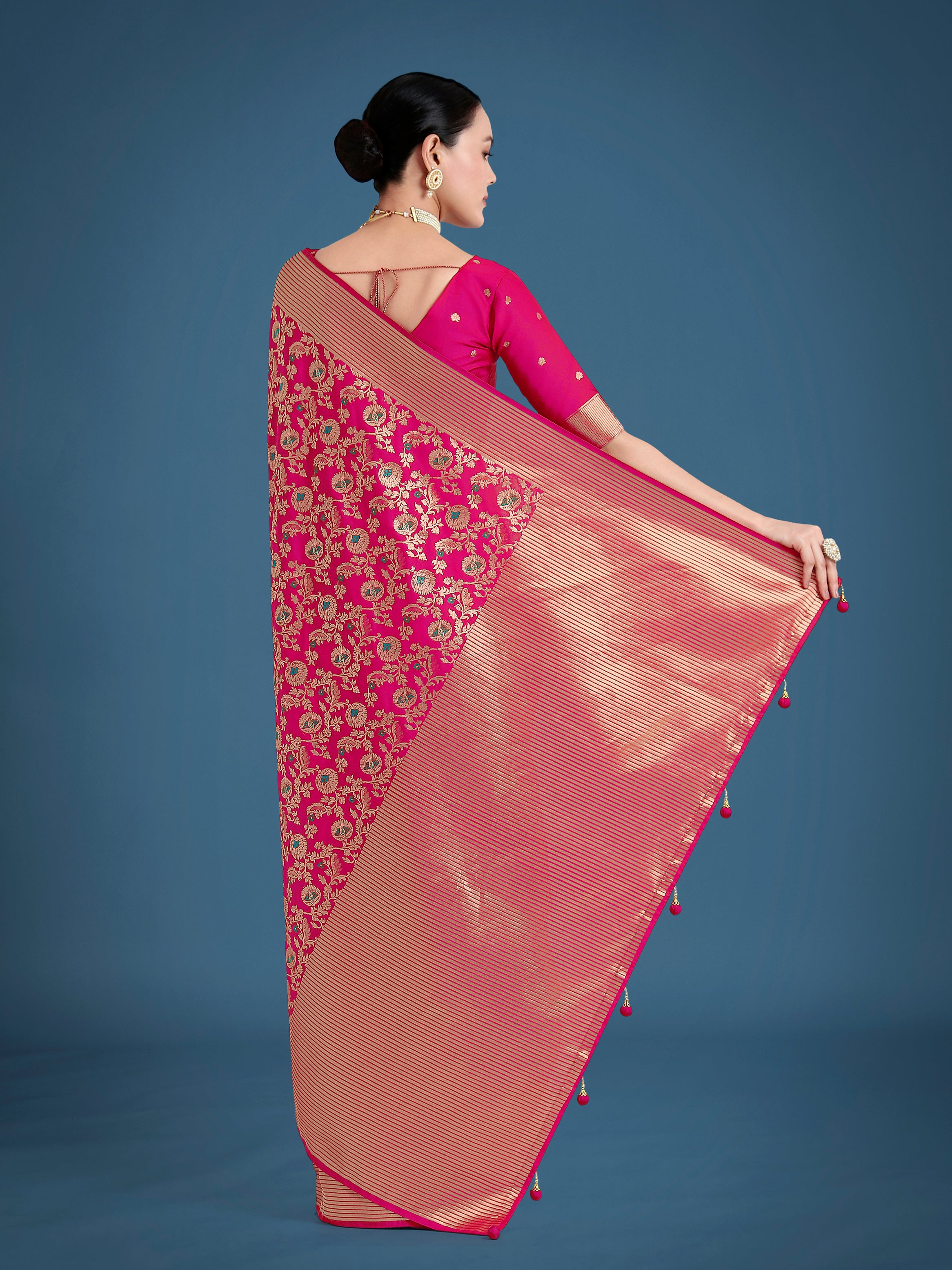 Saree Colour : Rani Pink || Blouse Colour : Rani Pink