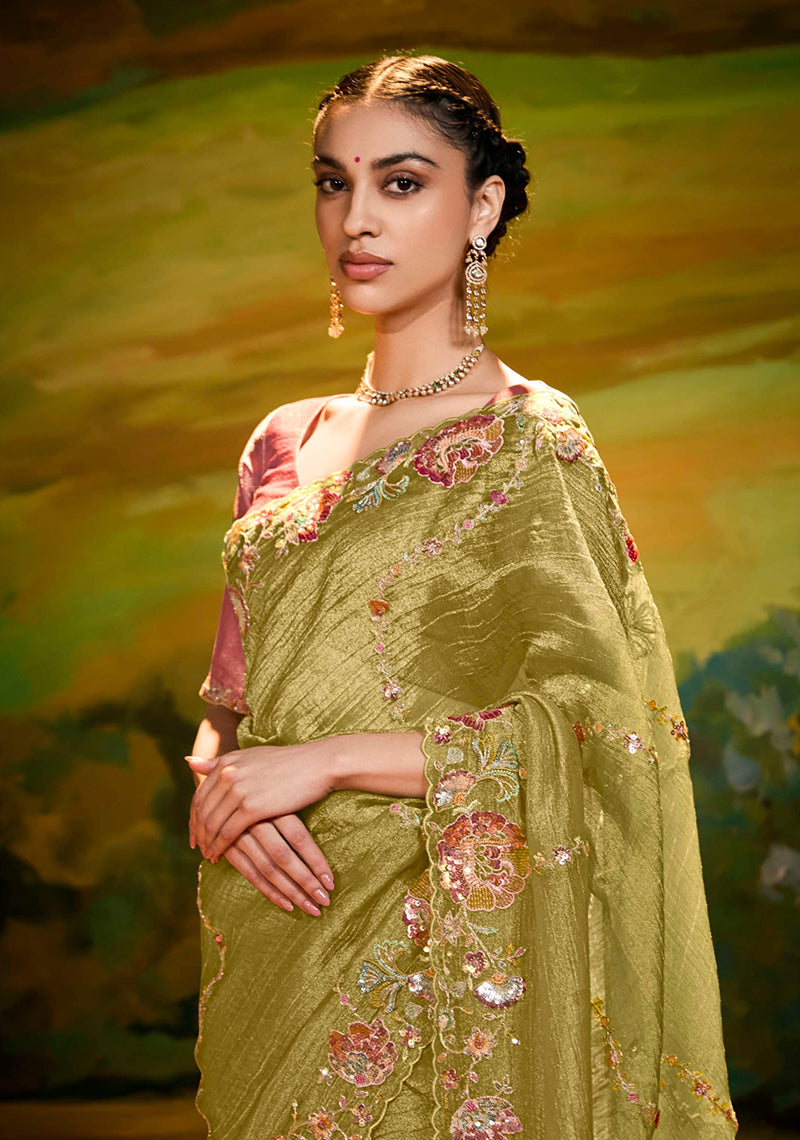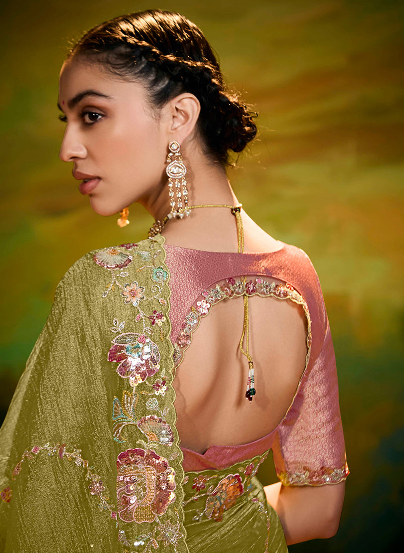 Saree Colour : Olive Green || Blouse Colour : Mauve