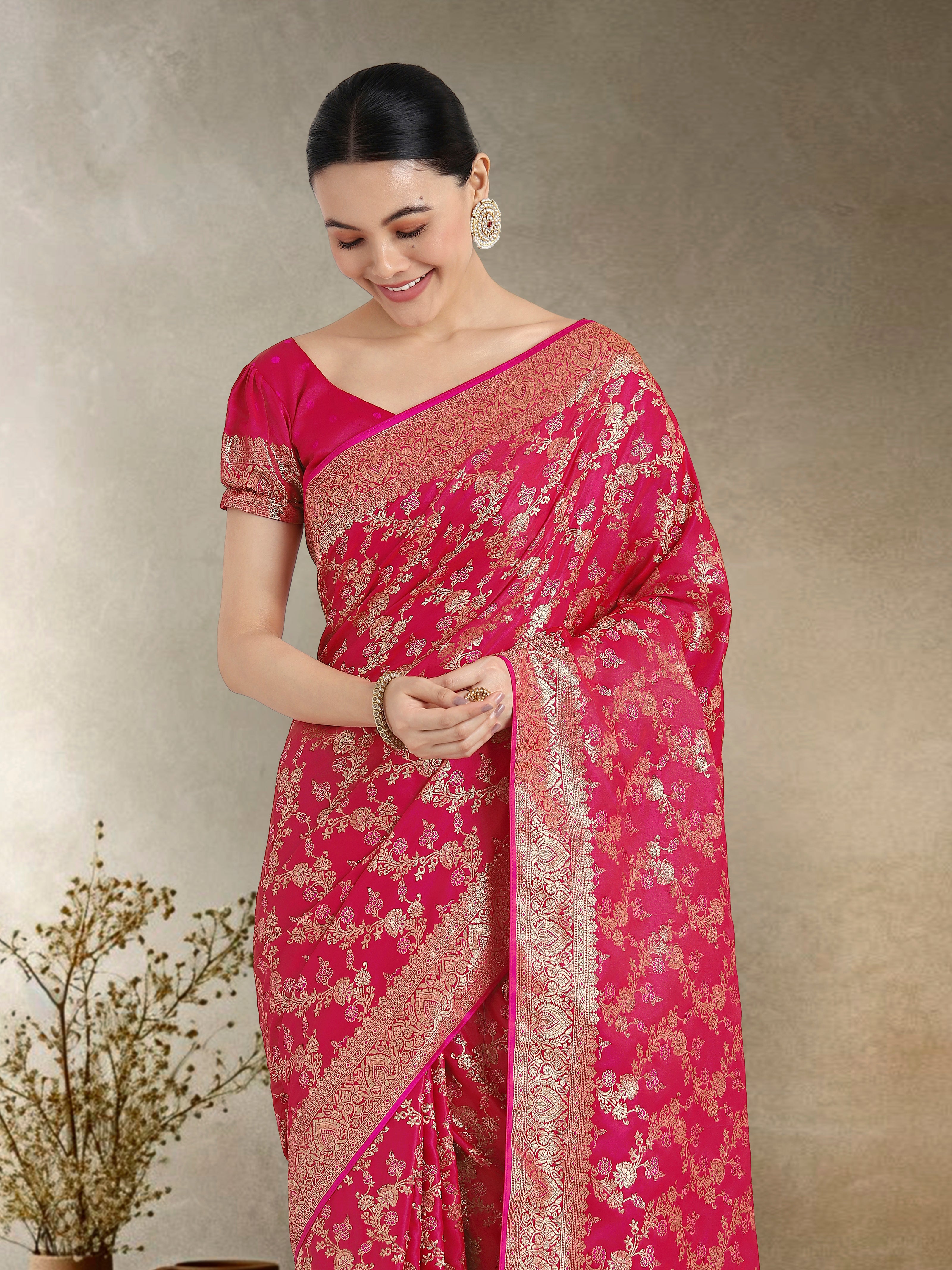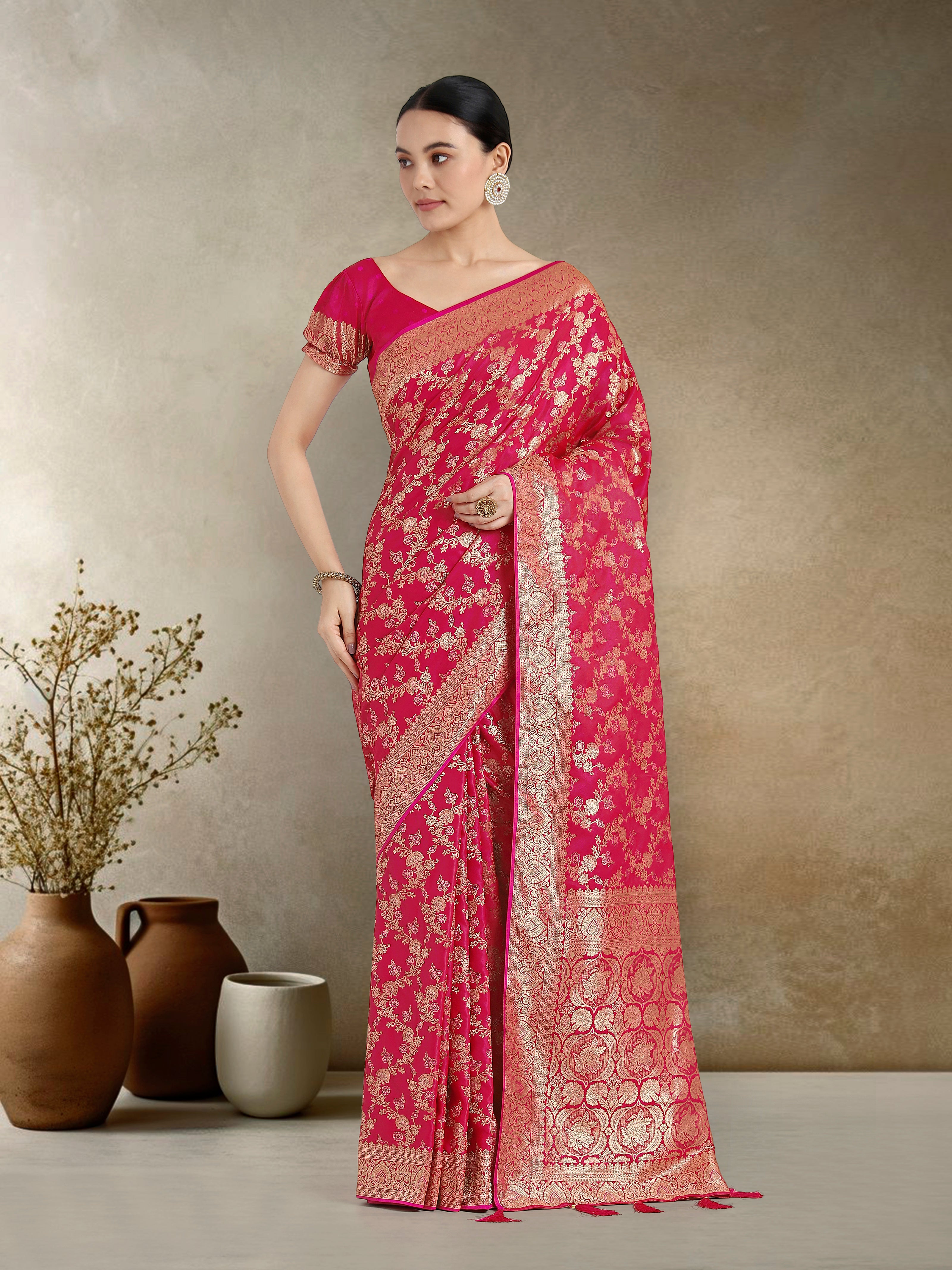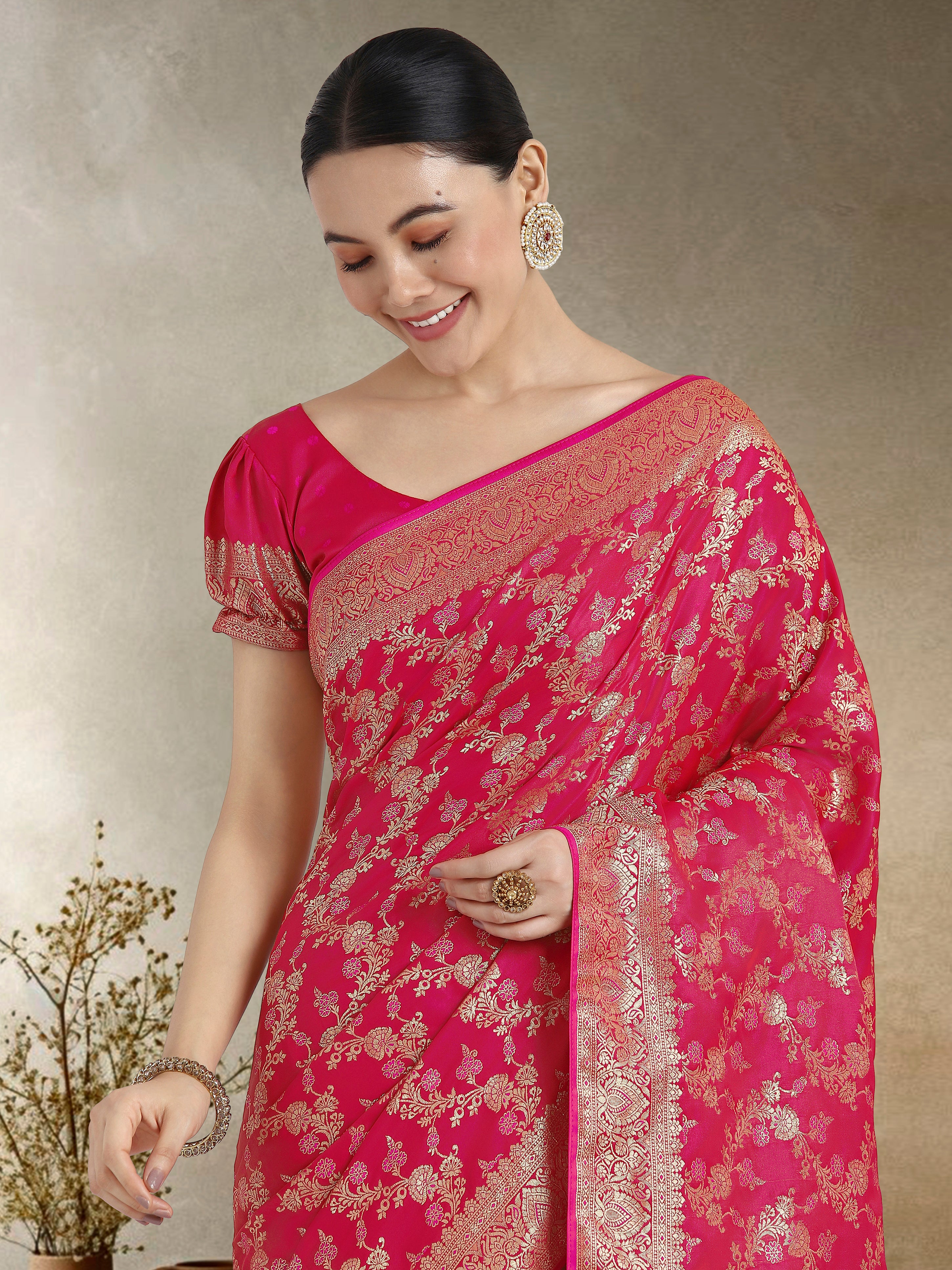 Saree Colour : Bright Pink|| Blouse Colour : Bright Pink
