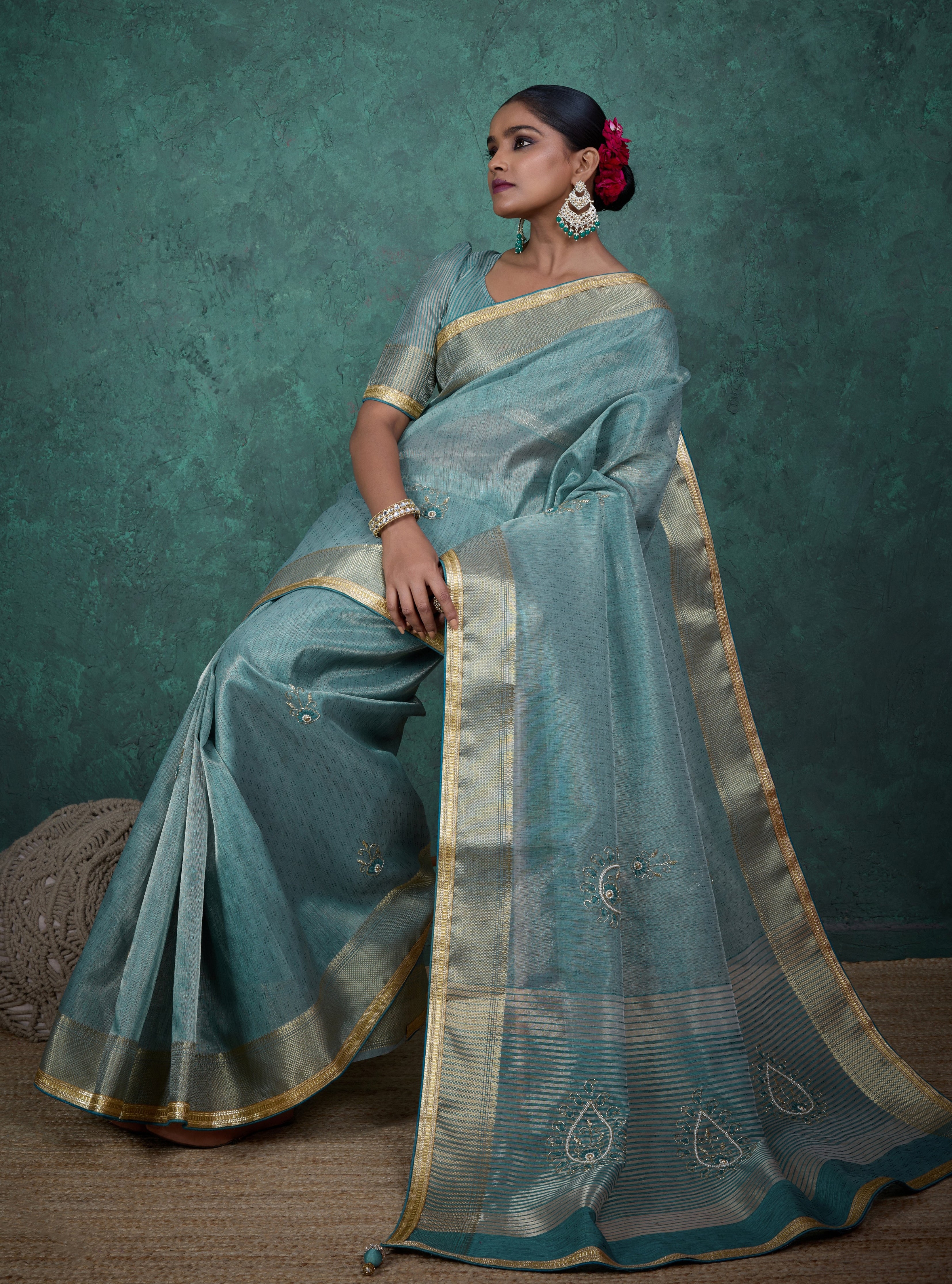 Saree Colour : Light blue || Blouse Colour :-Light blue