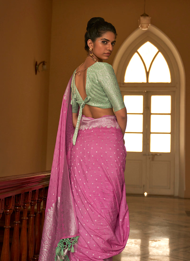 Saree Colour : Pink || Blouse Colour : Mint Green