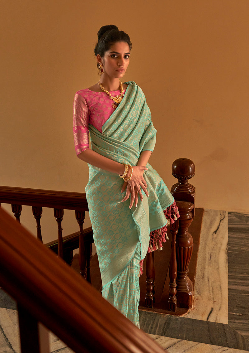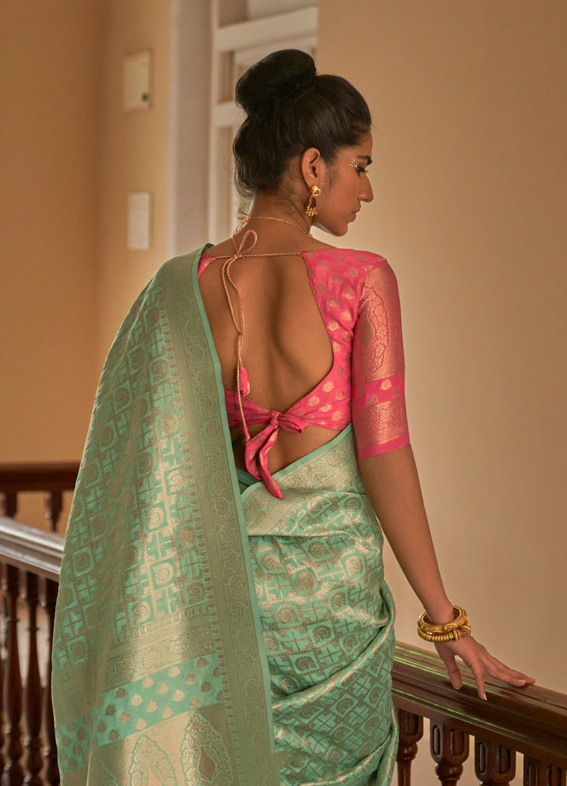 Monjolika Fashion presents drape yourself in timeless elegance with this stunning pink silk saree, adorned with exquisite gold zari weaving. A perfect blend of tradition and luxury, ideal for weddings, festivals, and special occasions.