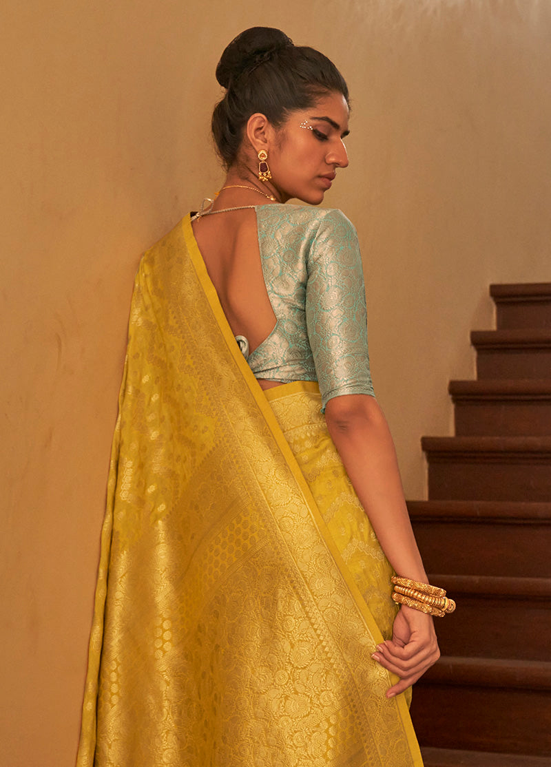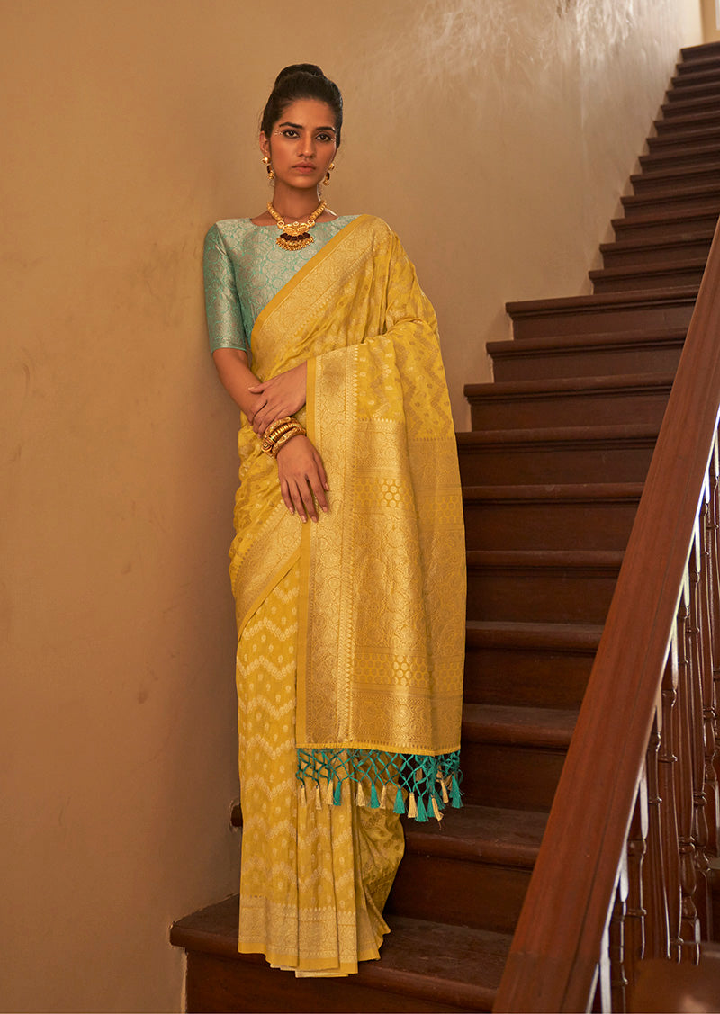 Saree Colour : Yellow || Blouse Colour : Light Sea Green
