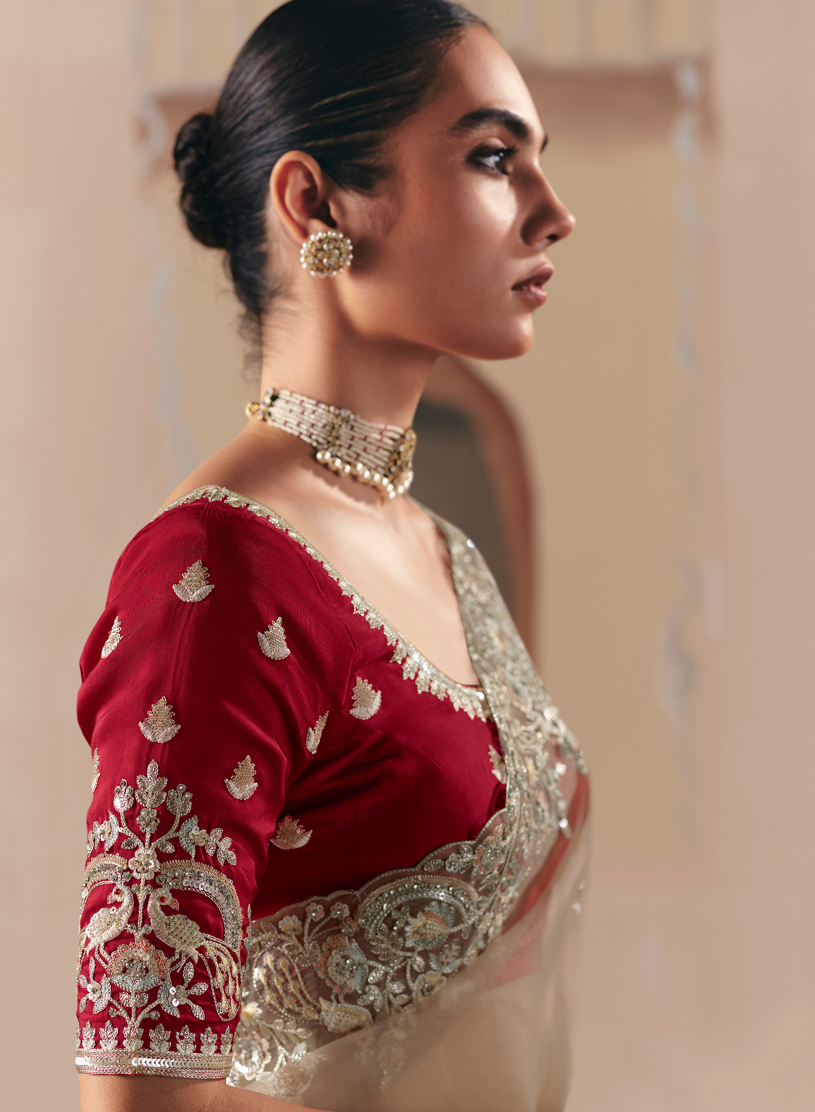 Saree Colour : Beige || Blouse Colour :- Maroon