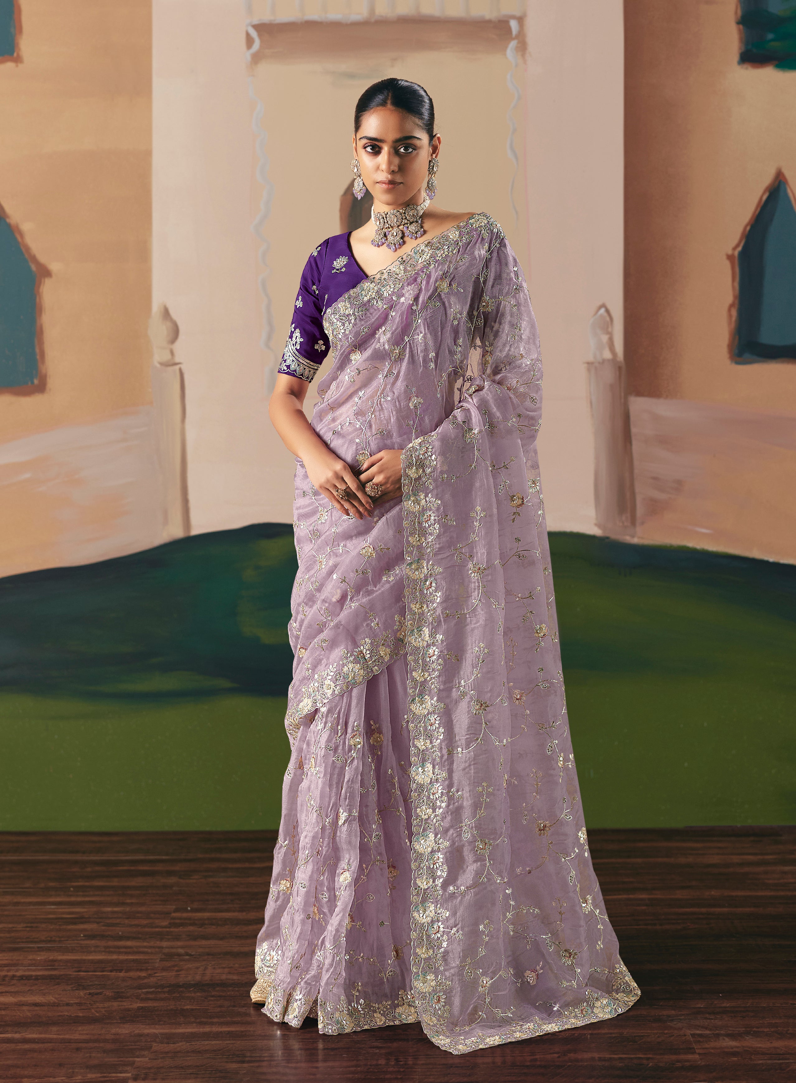 Saree Colour : Lilac || Blouse Colour :- Purple
