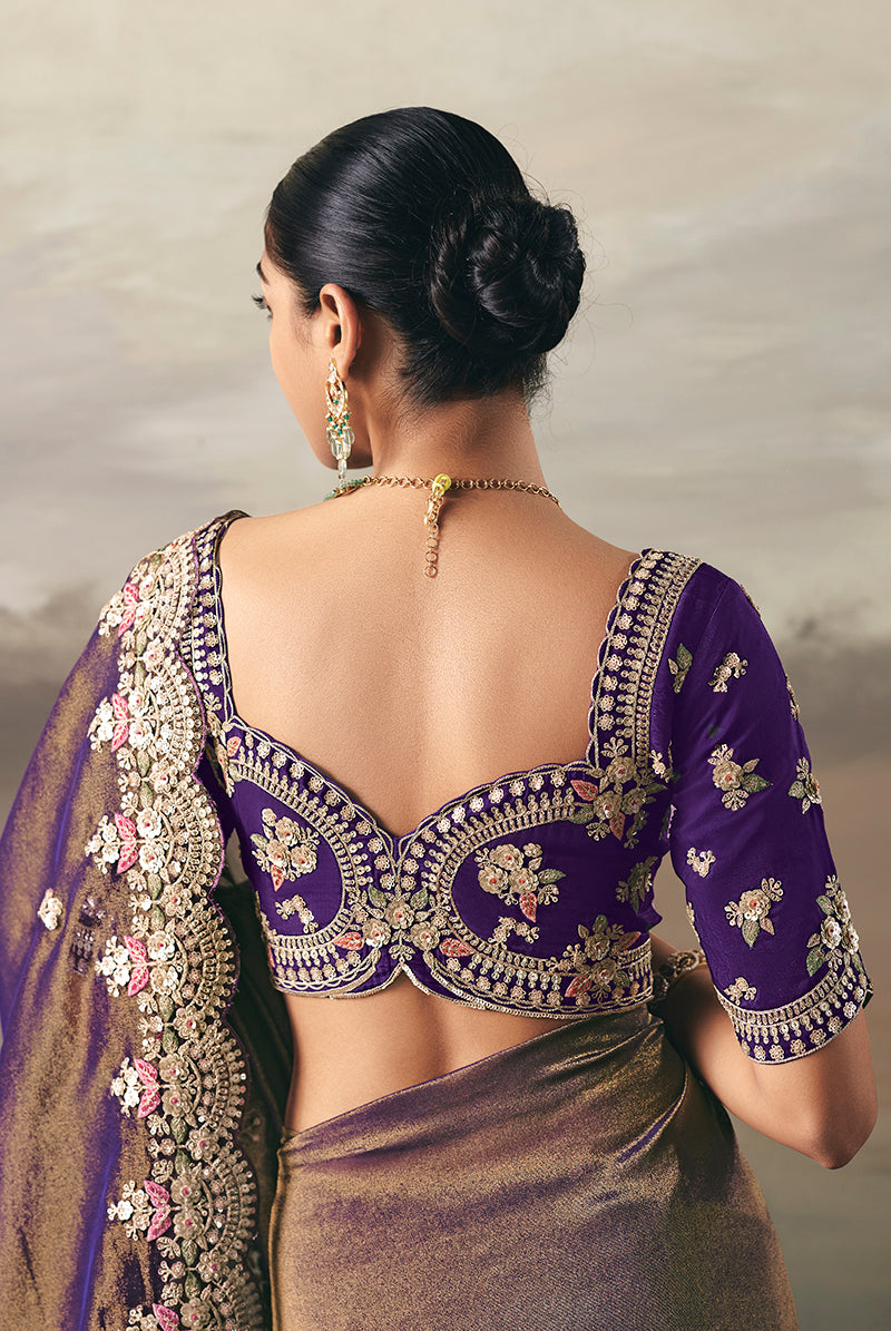 Saree Colour : Gold blue | Blouse Colour :Purple