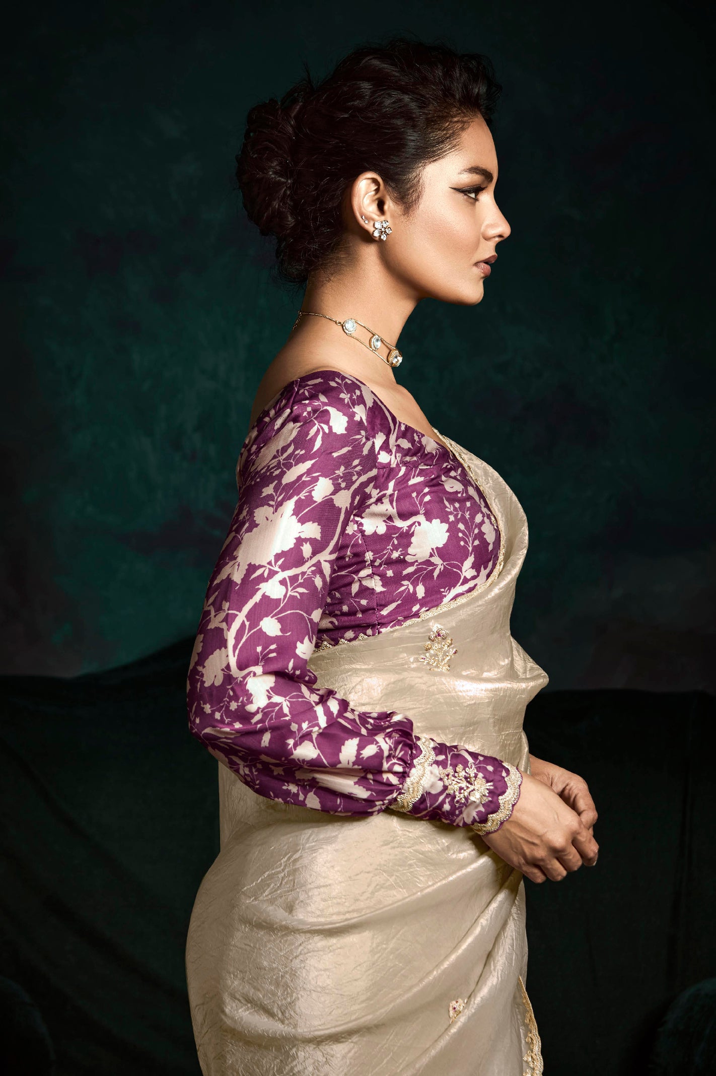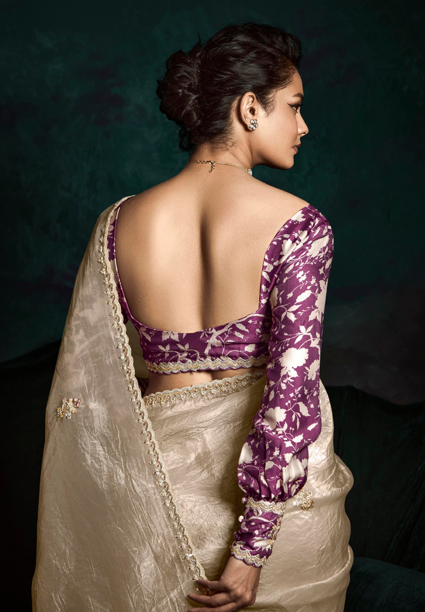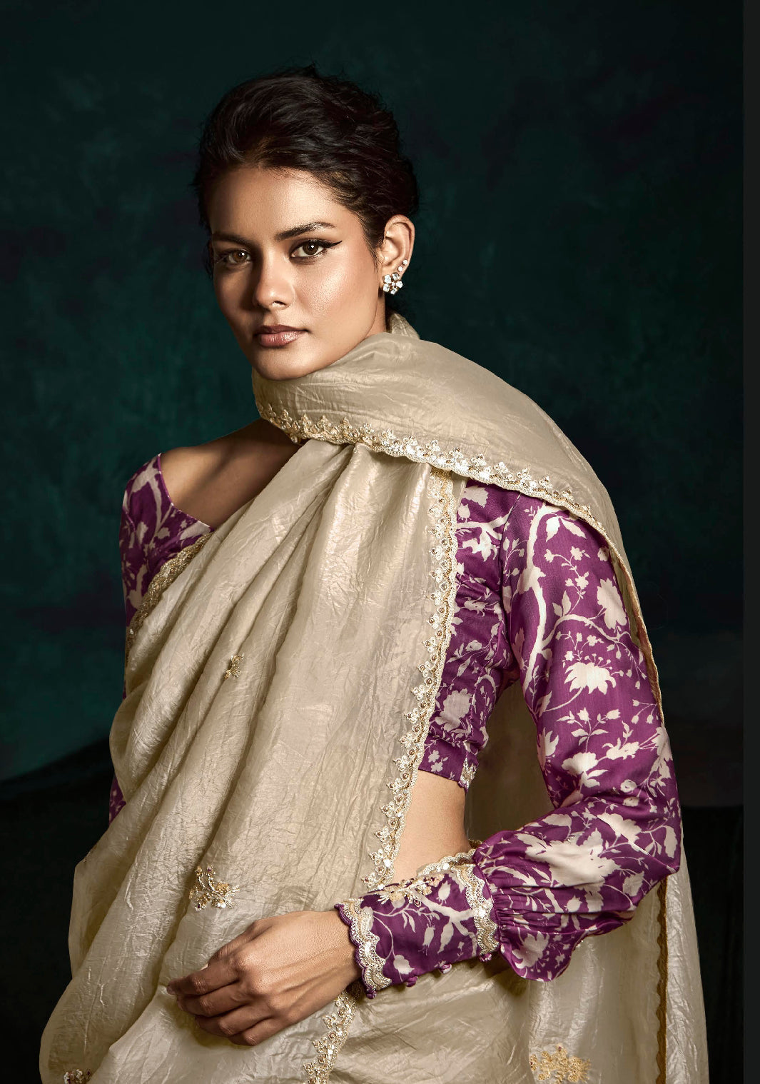Saree Colour : Golden Beige || Blouse Colour : Purple