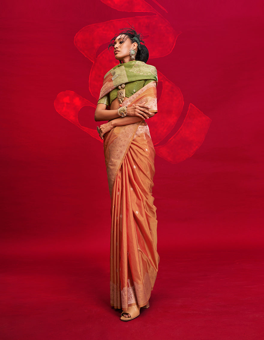Saree Colour : Light Orange || Blouse Colour: Green