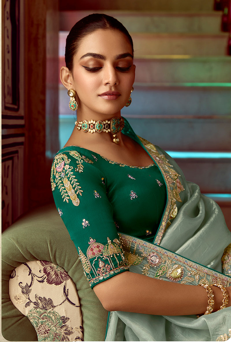 Saree Fabric : Organza Silk || Blouse Fabric : Art Silk
