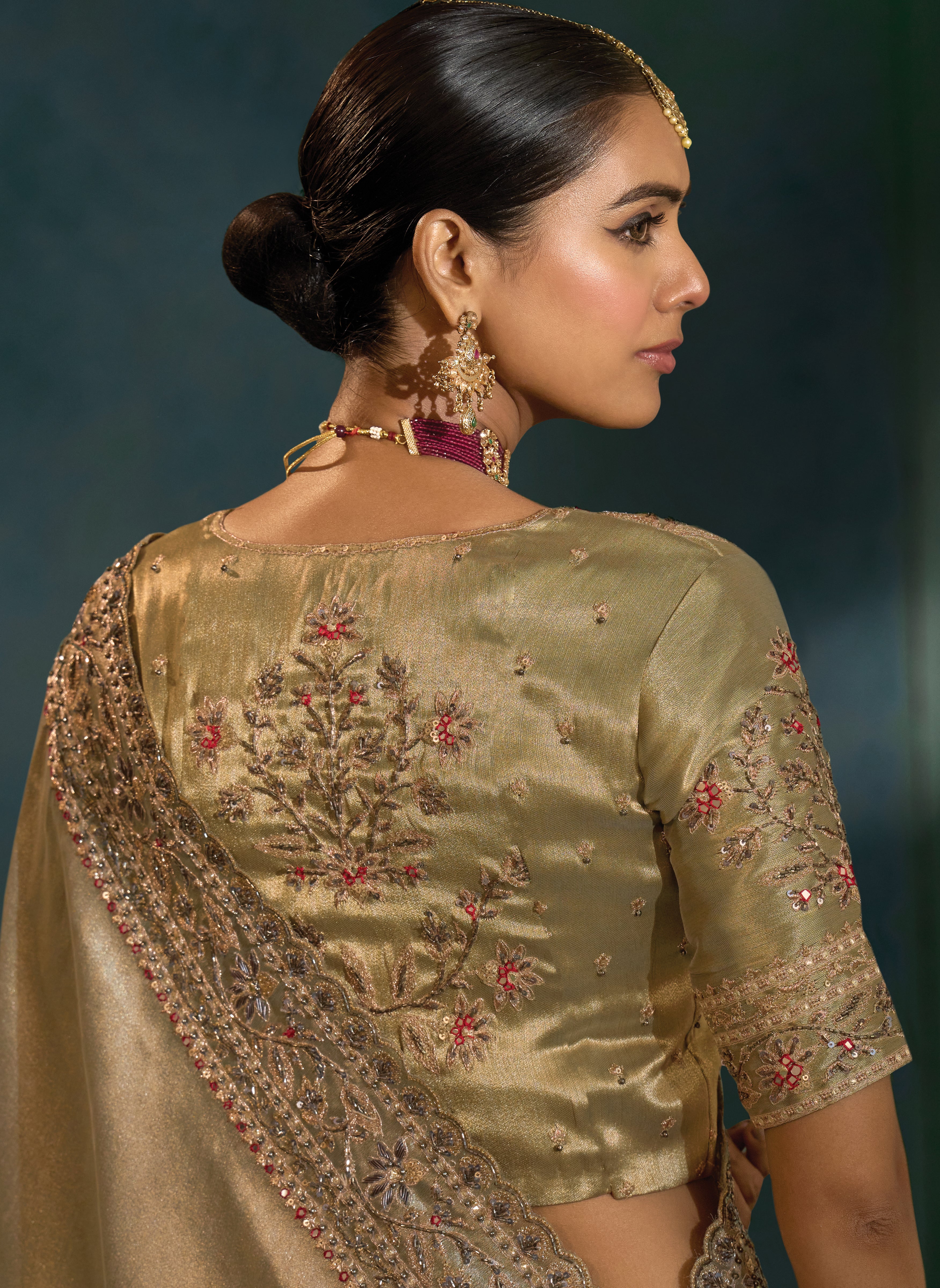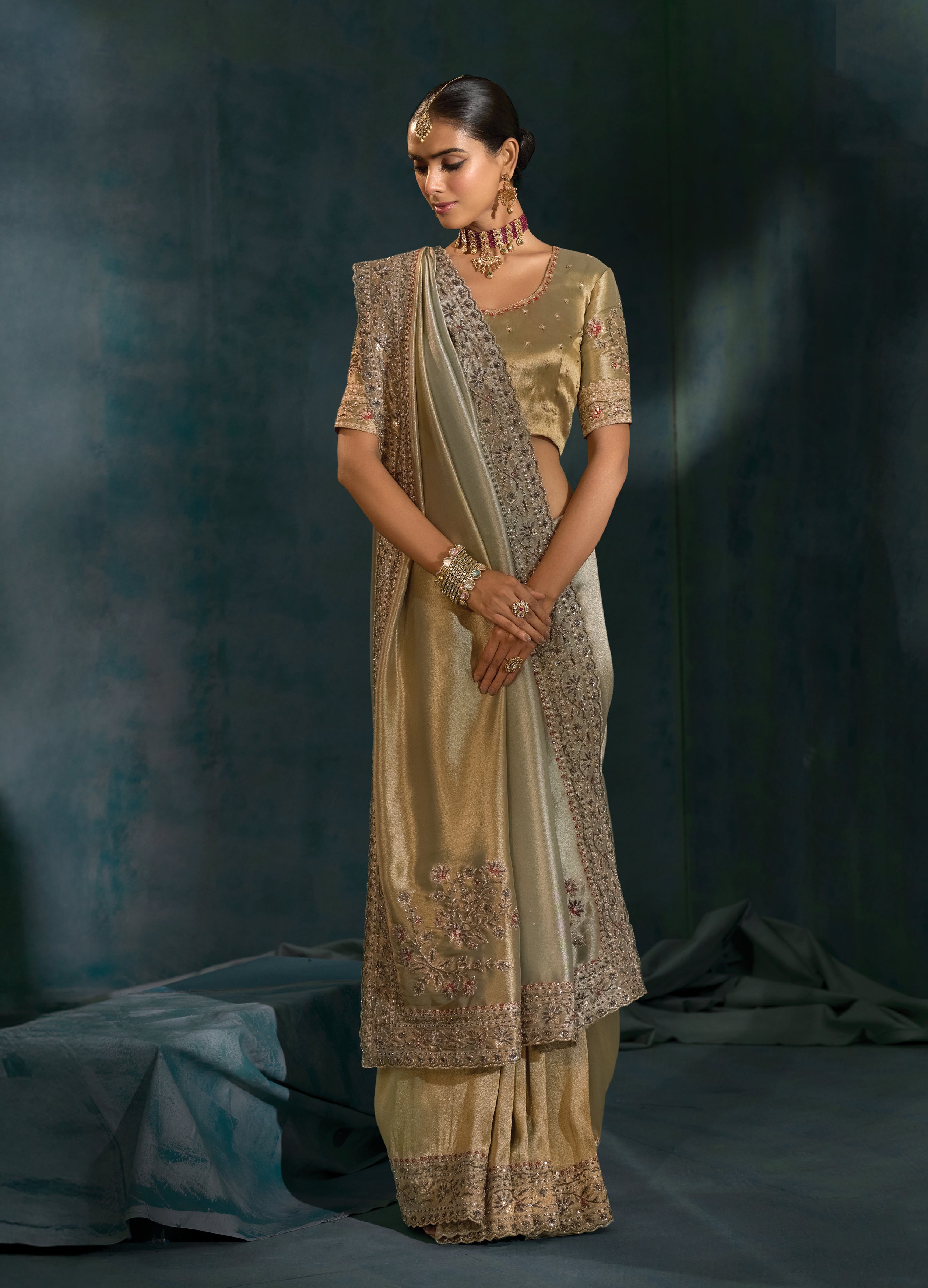 Saree Work : Thread, cutdana moti & Mirror heavy work