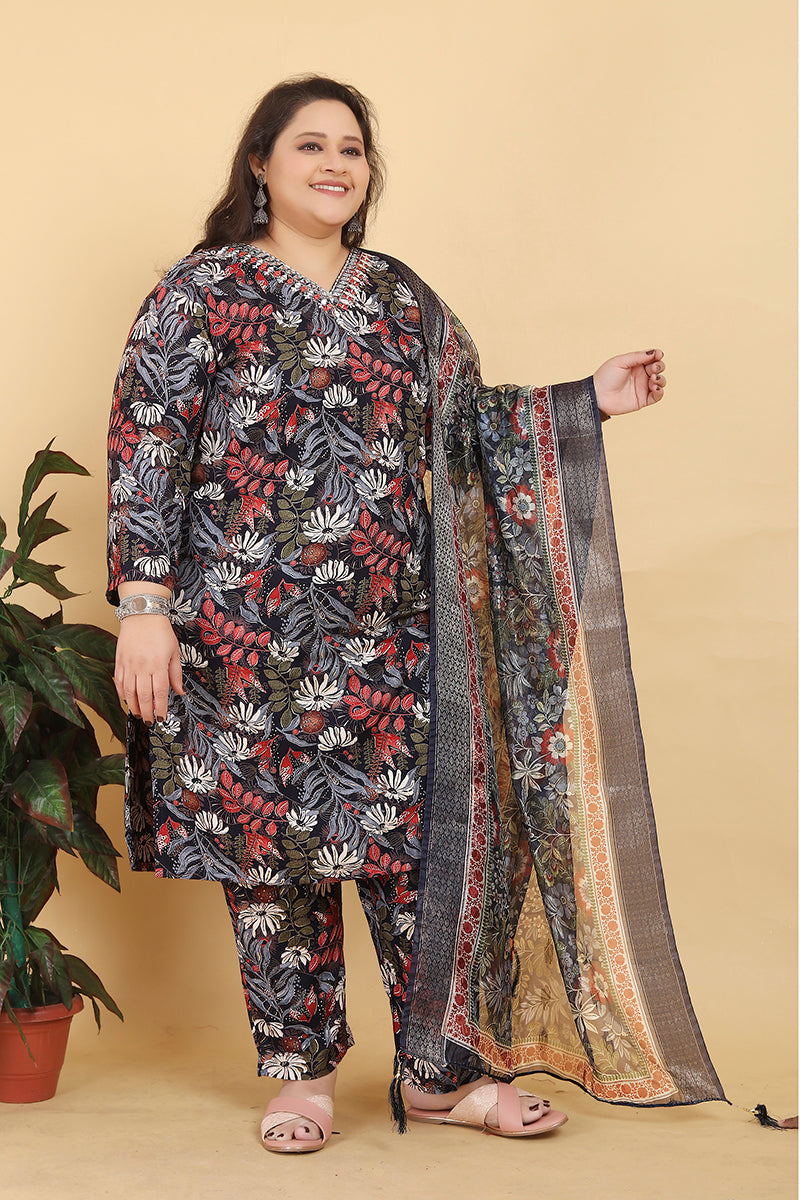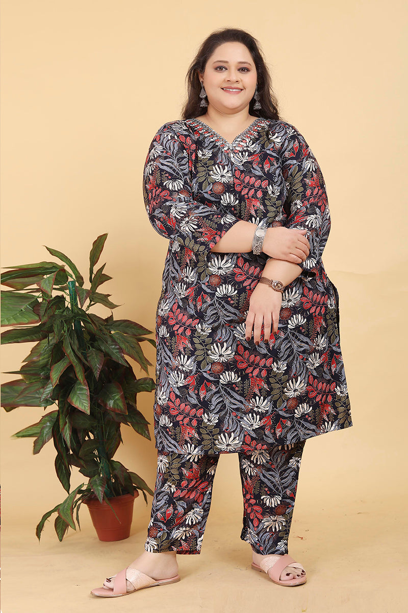 Keep ahead in trend with this Black colour Premium Rayon Handwork pant style suit. Beautified with floral print work all synchronized very well with the trend and style and design of the attire. Comes with matching bottom and dupatta.