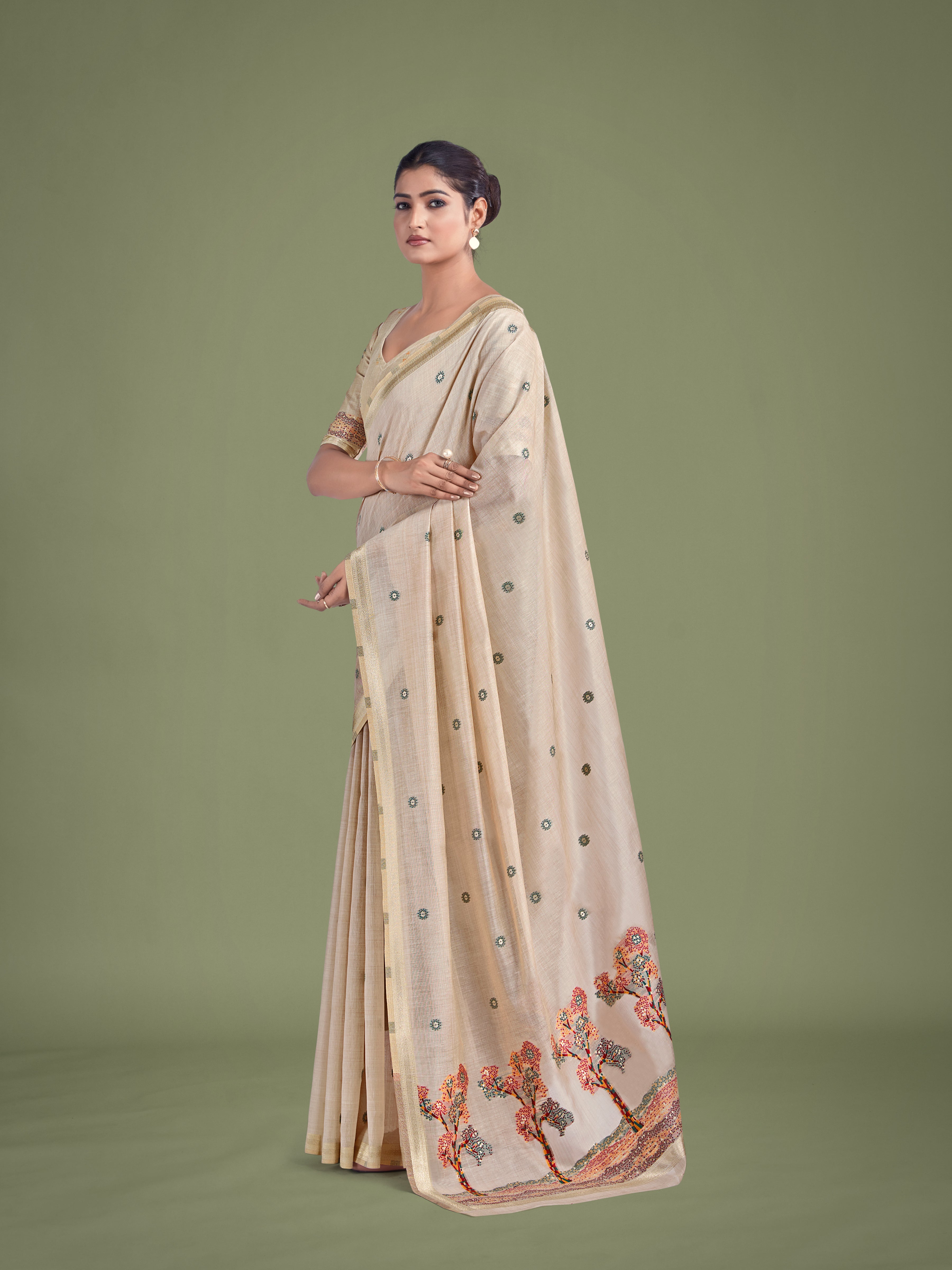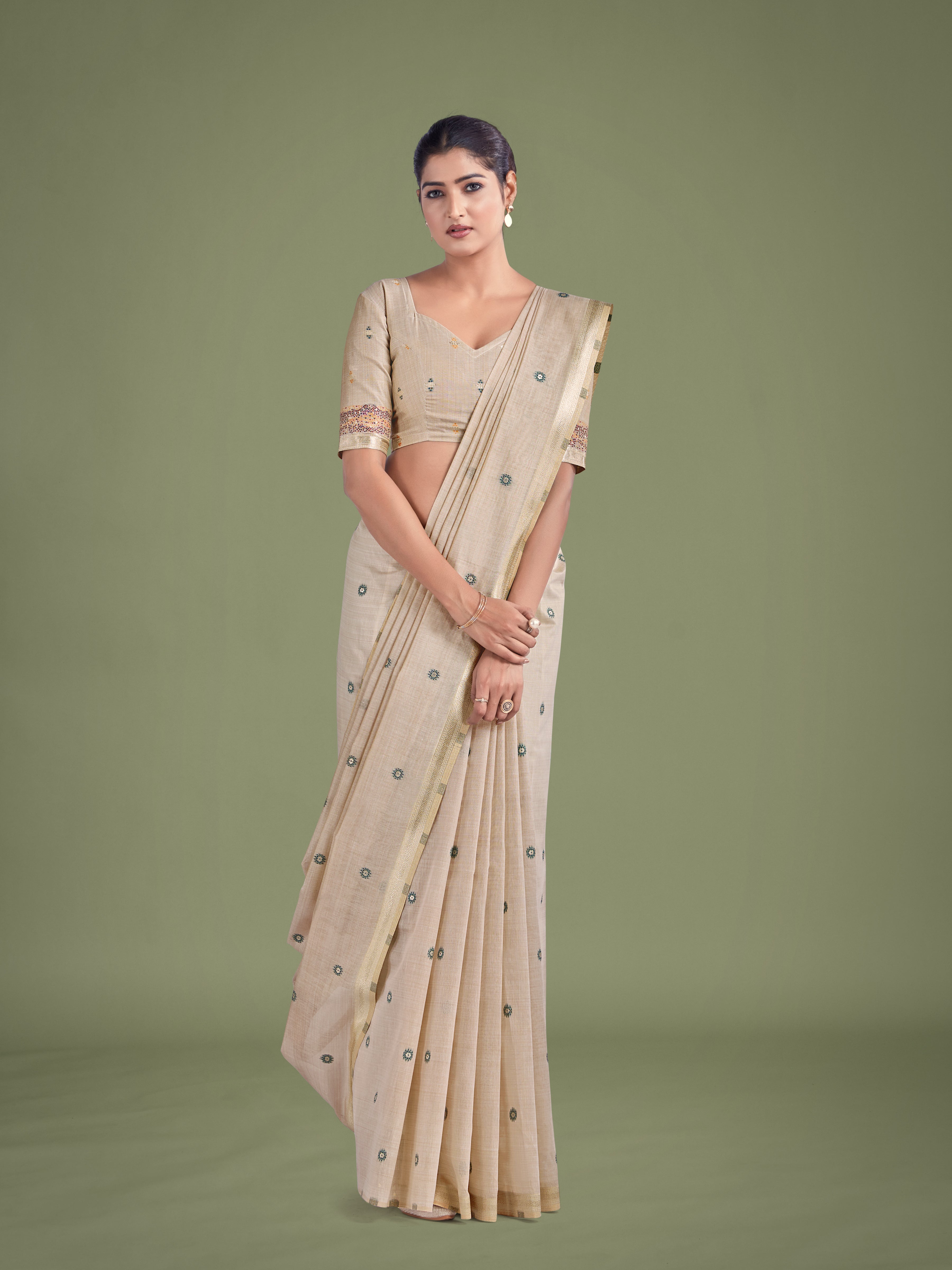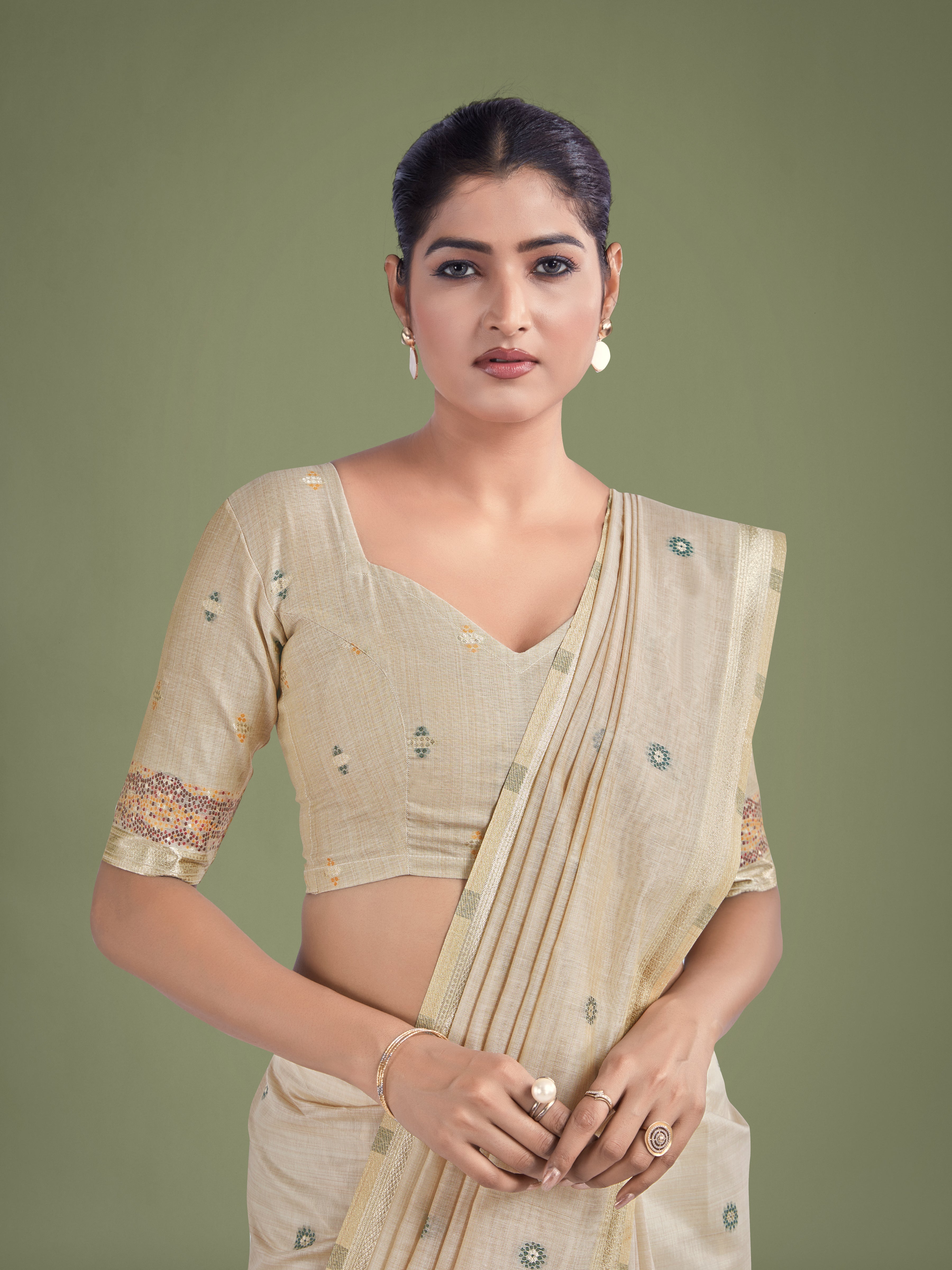 Saree Work : Woven Butti ,Golden Zari border work || Blouse: Woven work