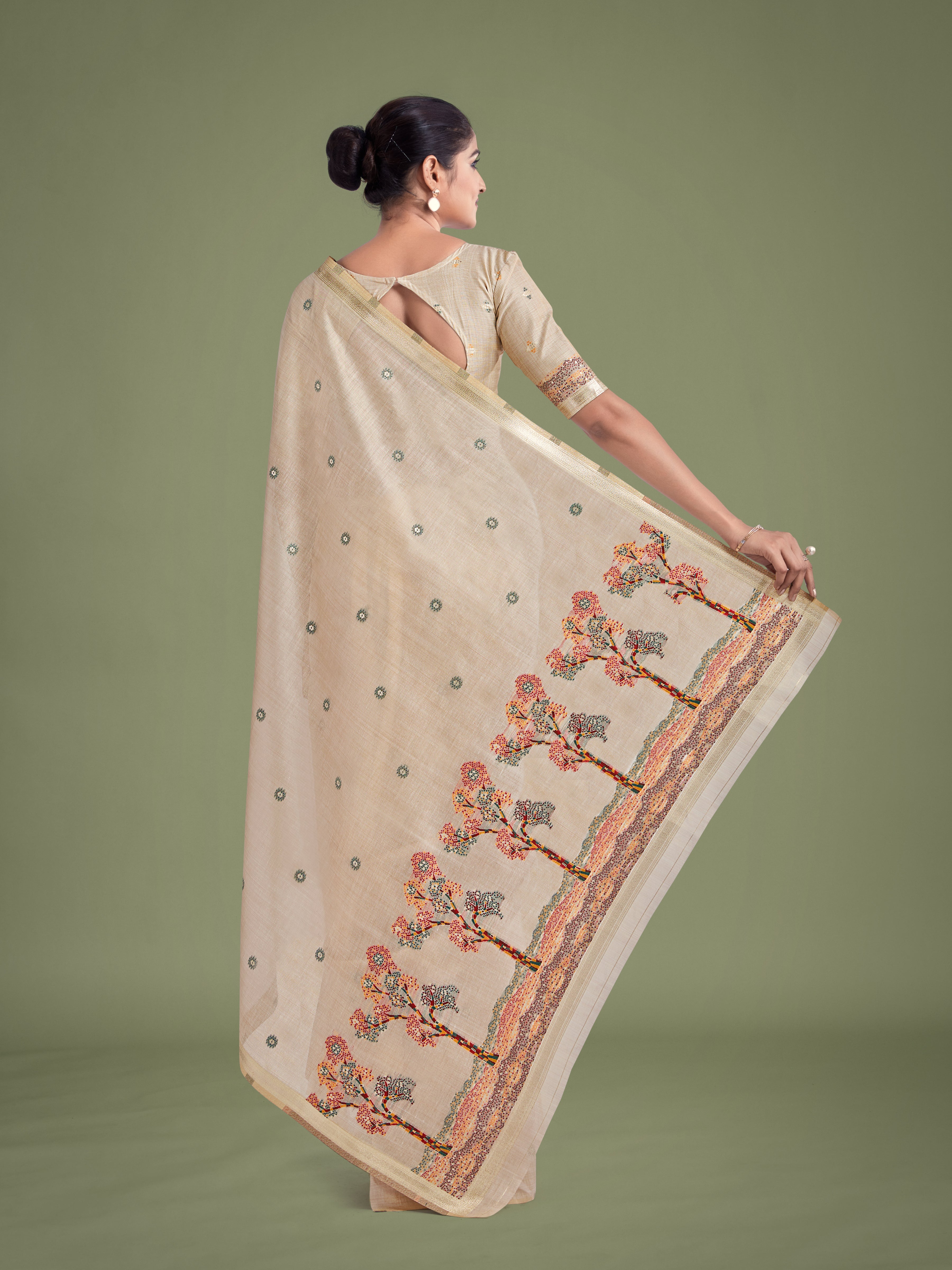 Saree Colour : Beige & Maroon || Blouse Colour :-Beige