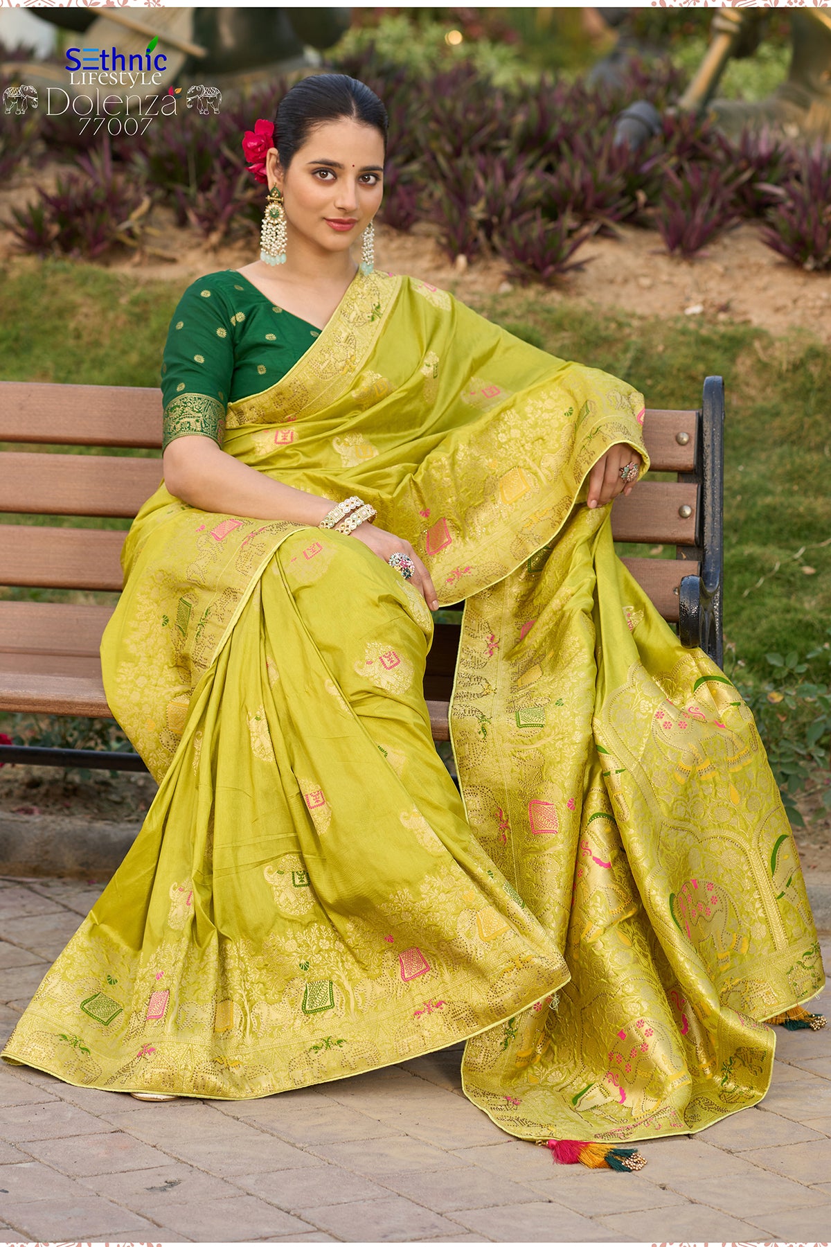 Saree Colour : Parrot Green | Blouse Colour :- Dark Green