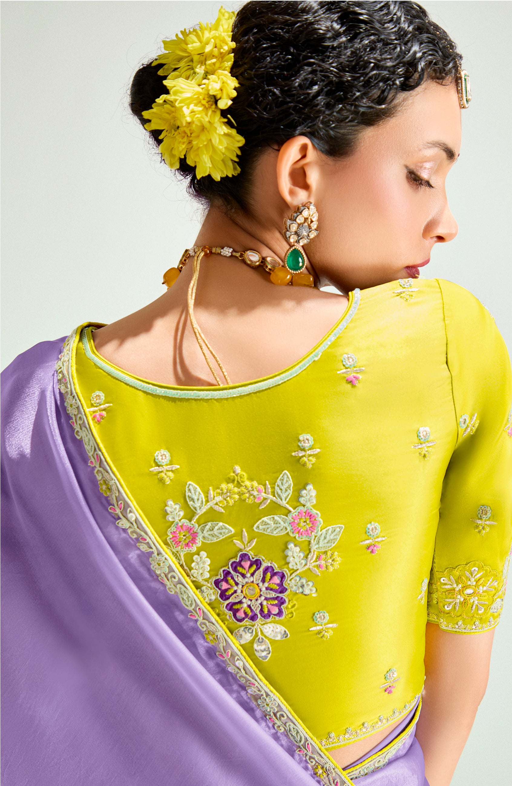 Saree Colour : Lavender And Yellow | Blouse Colour :Light yellow