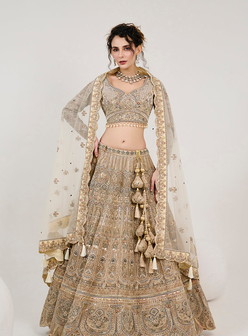 Colour : Lehenga :- Beige || Blouse :- Beige || Dupatta :- Beige