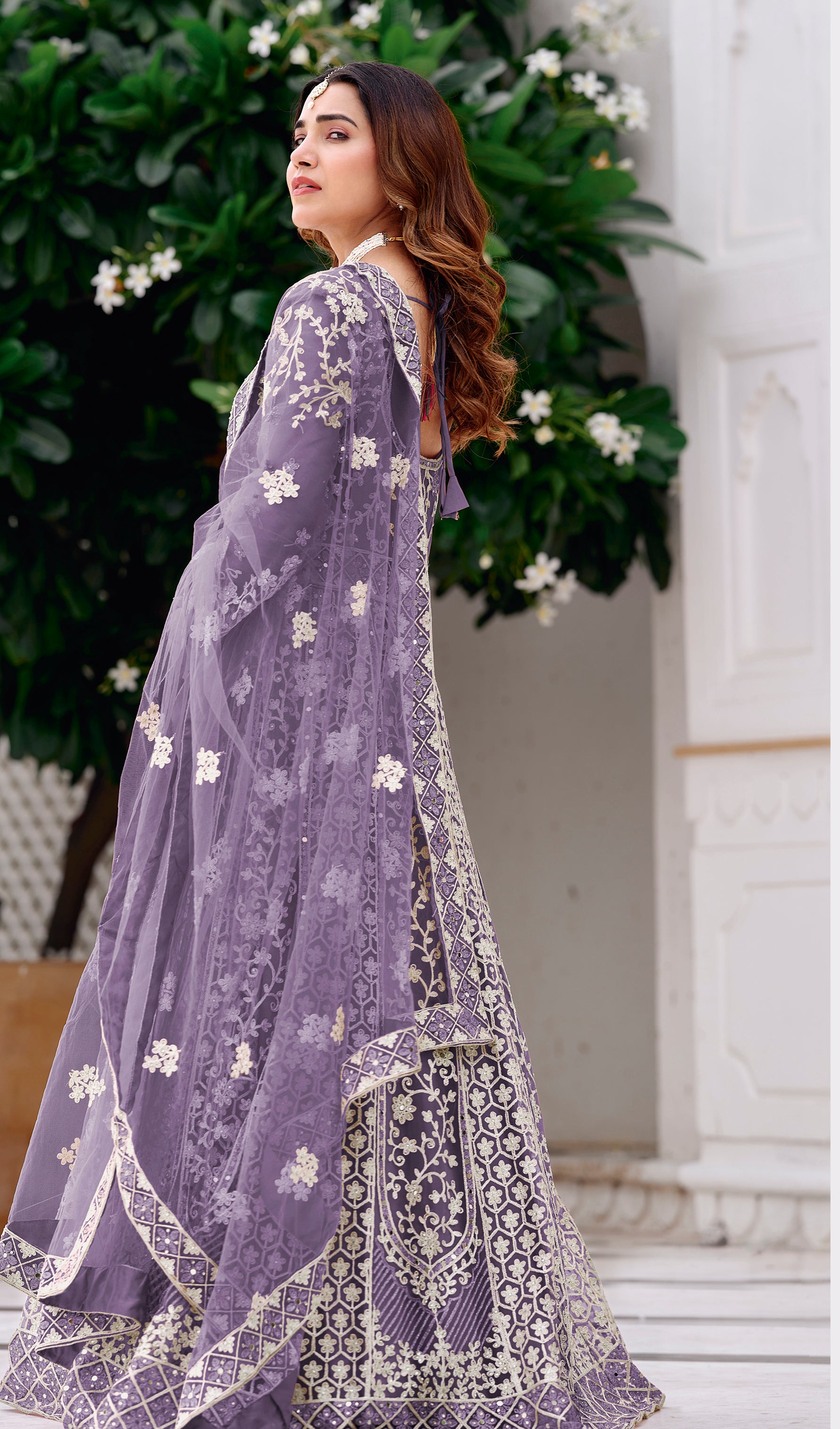 Vogue and pattern will be on the peak of your magnificence as soon as you attire this Light Lavender net readymade trendy gown . Beautified with embroidered, mirror and stone work all synchronized nicely with the design and style of the attire. (Slight variation in color, fabric & work is possible. Model images are only representative.)