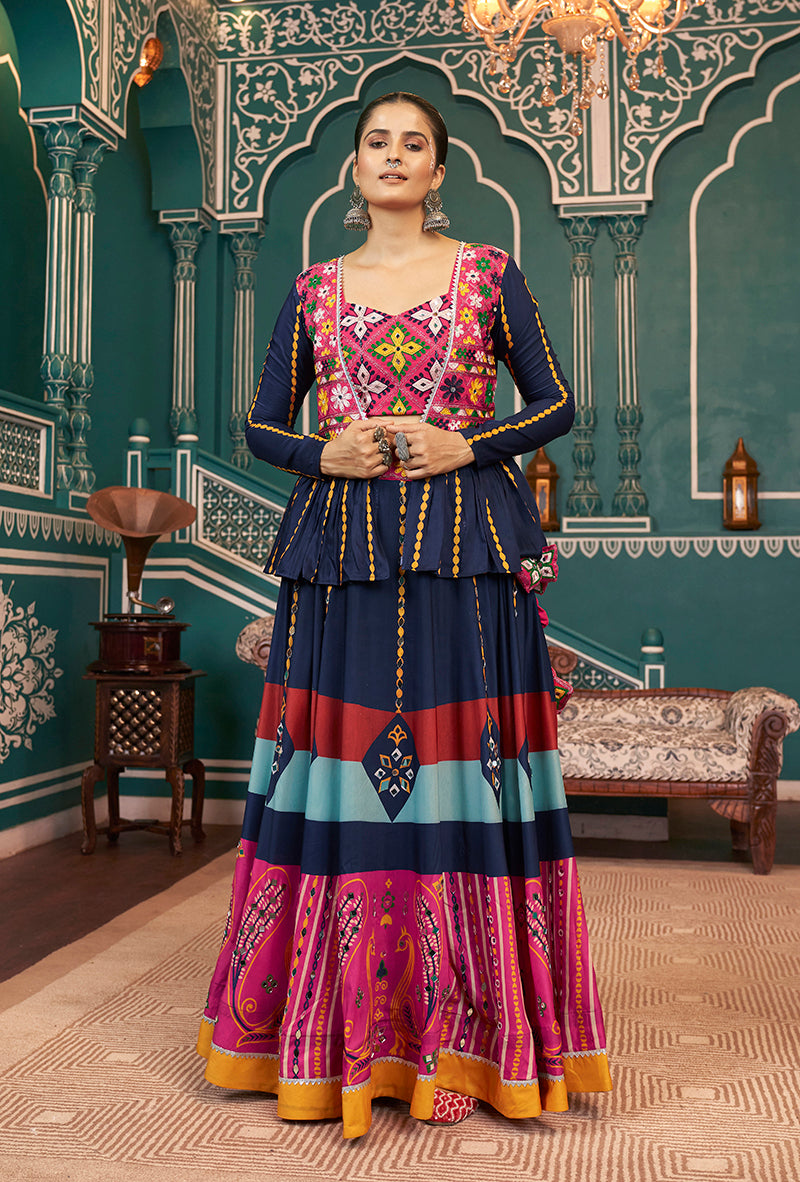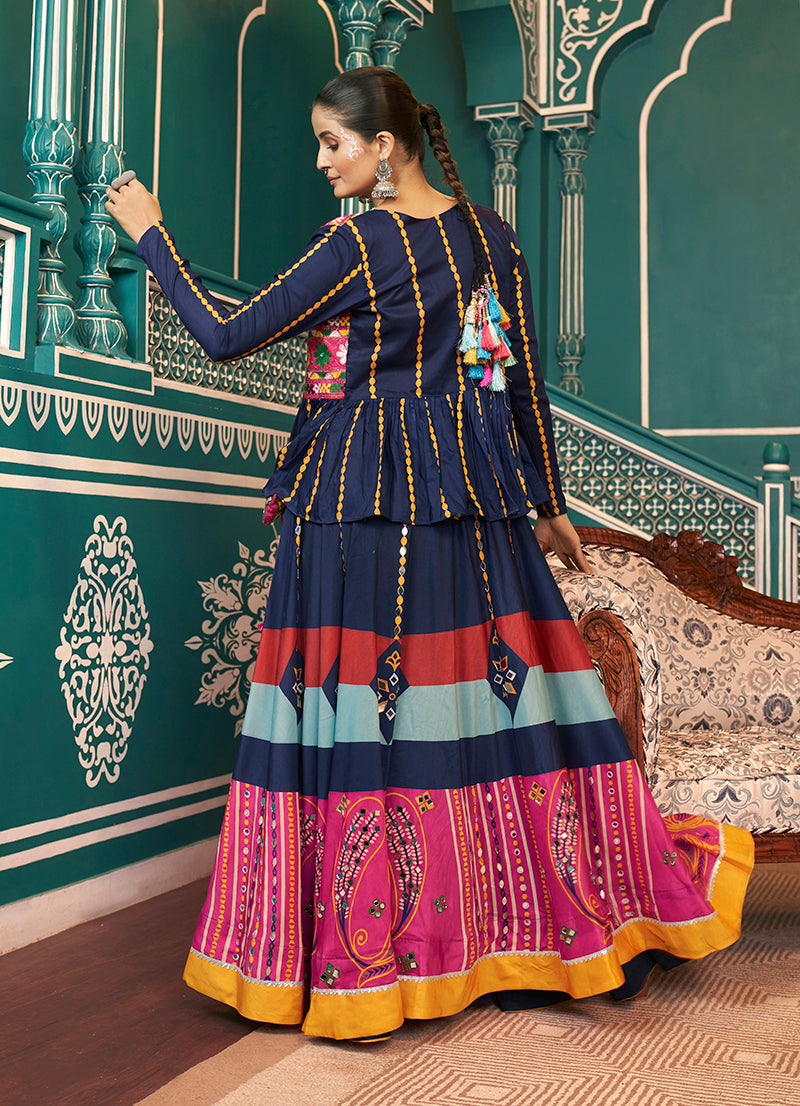 Colour : Lehenga :-Navy blue || Blouse :-Rani Pink|| Koti :- Navy blue