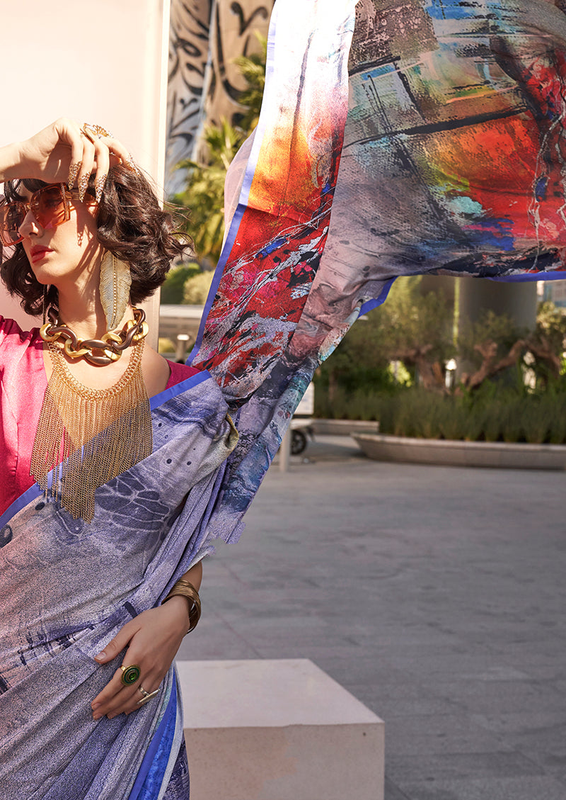 Its a master piece in its class glorifying your timeless beauty. Be ready to slip in the comfort zone of light blue satin contemporary saree. The lovely digital print work throughout the attire is awe inspiring. Comes with an unstitched blouse. Do Note: All the accessories shown are for styling purpose only. Slight color variation may occur due to photographic reasons.