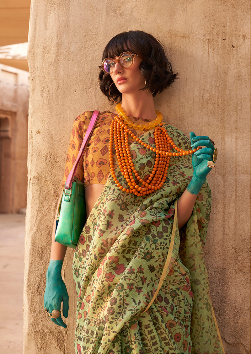 Saree Colour : Light Green || Blouse Colour : Orange